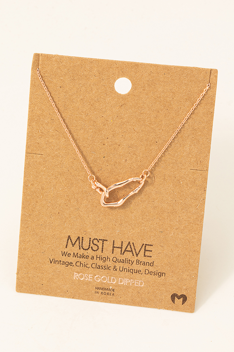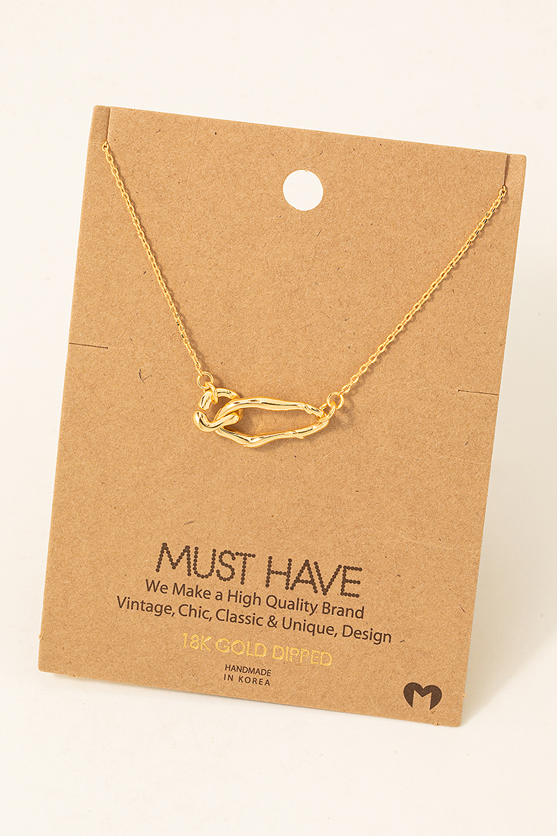 • This trending necklace adds a modern gold dipped warped ring linked pendant necklace style. Embark on a journey of sartorial refinement as this trending necklace effortlessly complements your fashion sense.