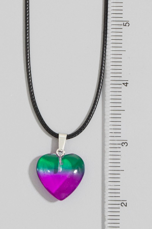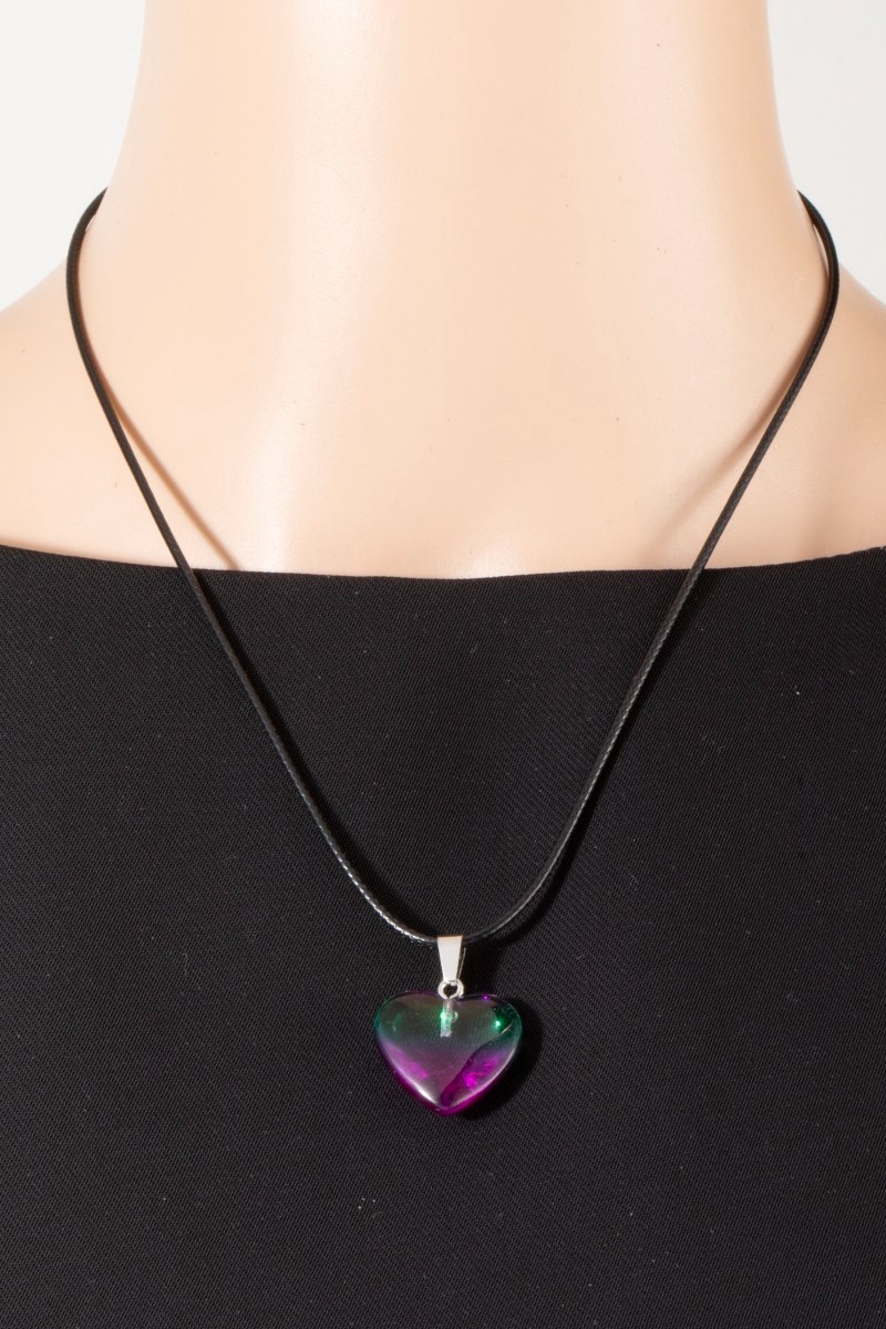 - This pendant necklace showcases a unique green purple heart style. Savor the craftsmanship that goes beyond the ordinary, as this pendant necklace effortlessly captivates attention.