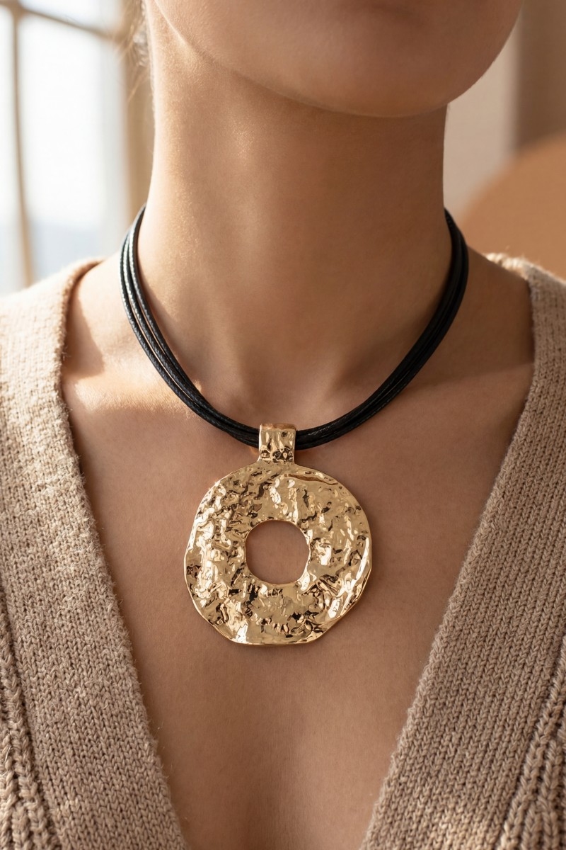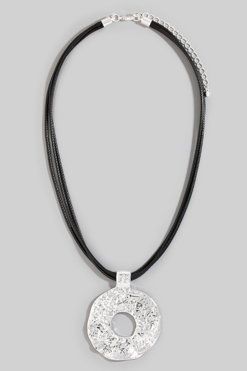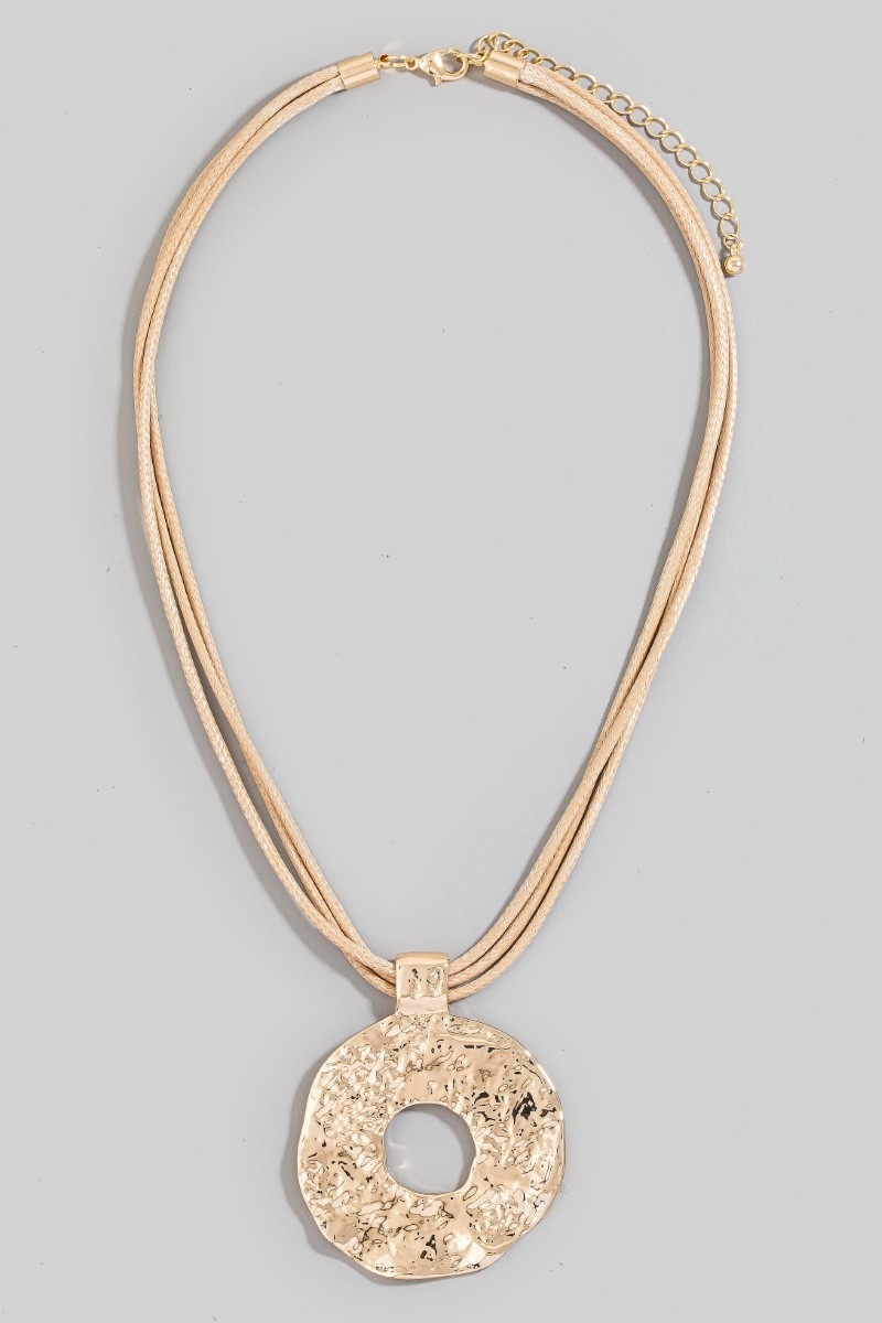 - This pendant necklace brings a stunning hammered circle pendant layered cord necklace style. Elevate your ensemble with this pendant necklace that effortlessly captures the essence of refined fashion.