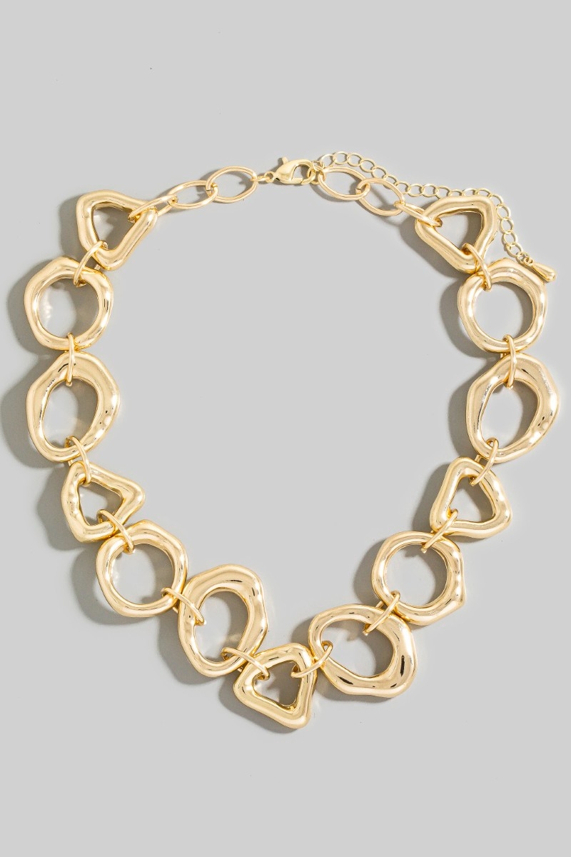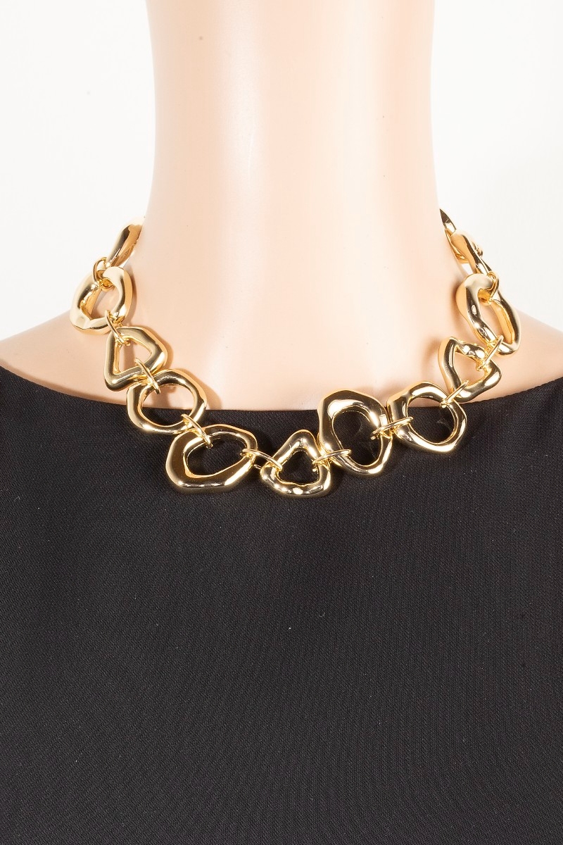 - This chain necklace brings a stunning irregular metallic statement style. Unveil modern elegance with this subtly intricate chain necklace.