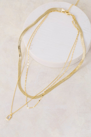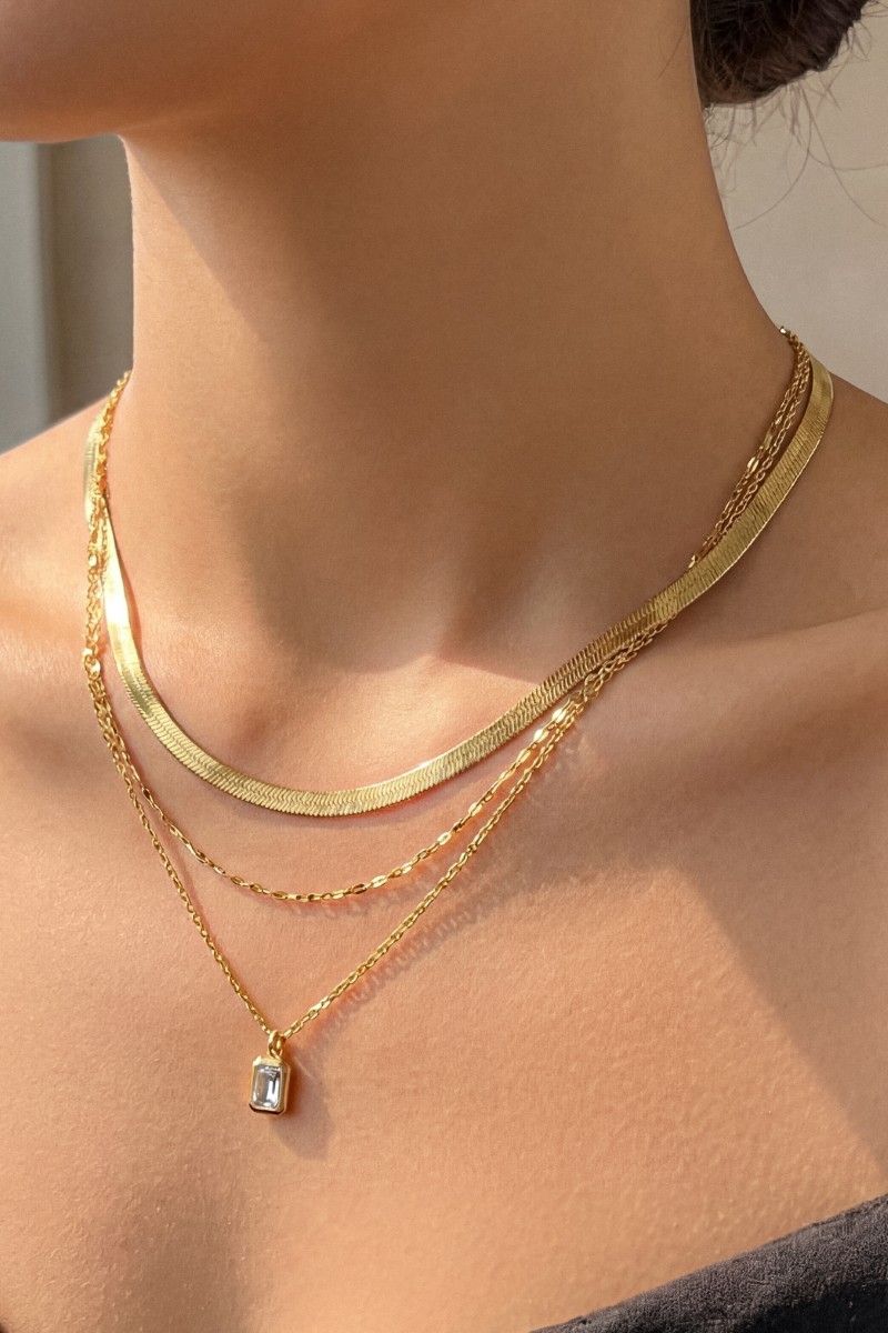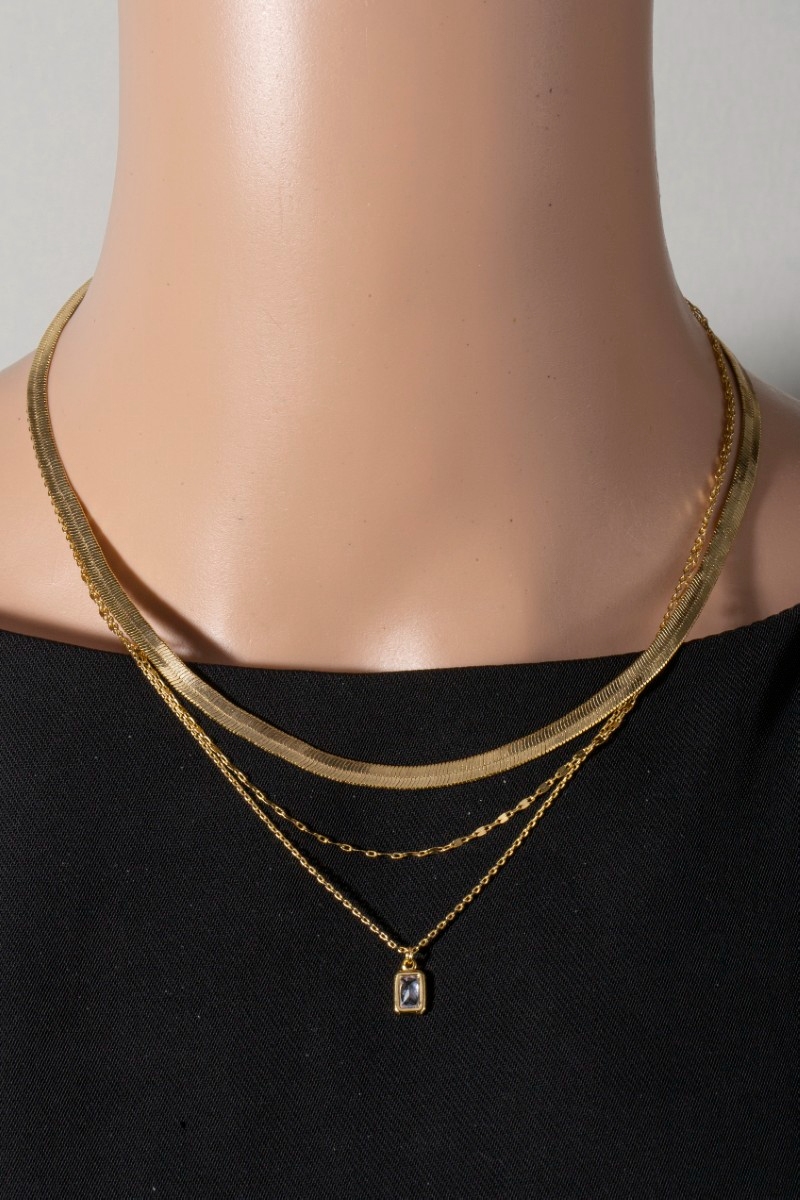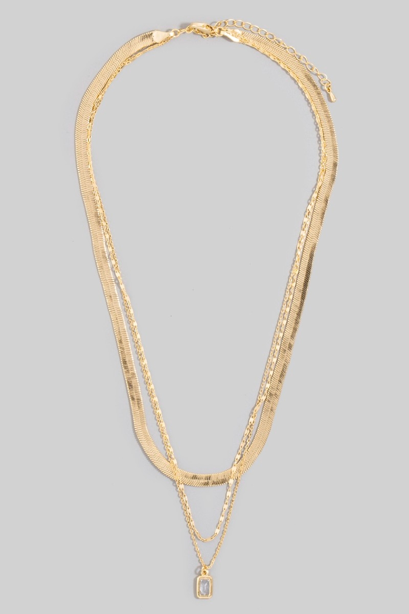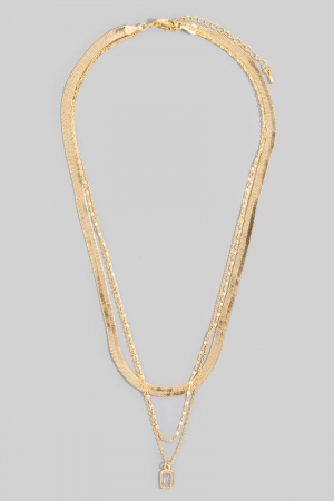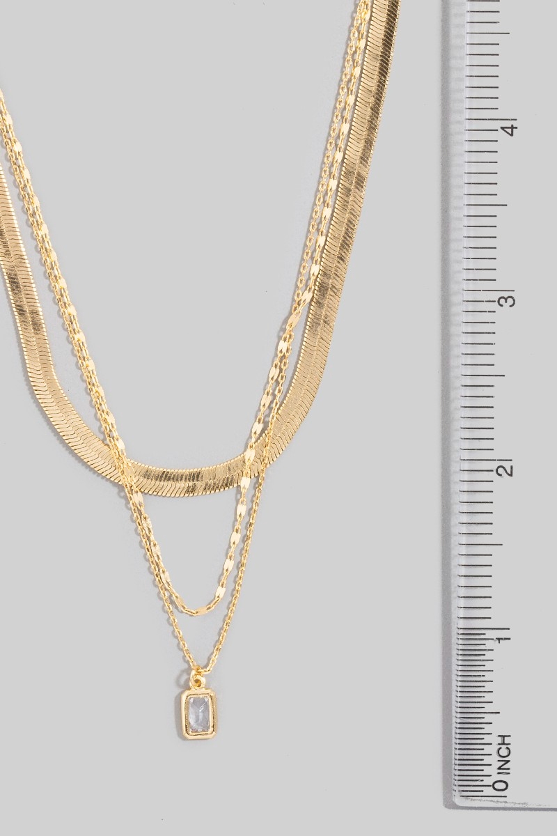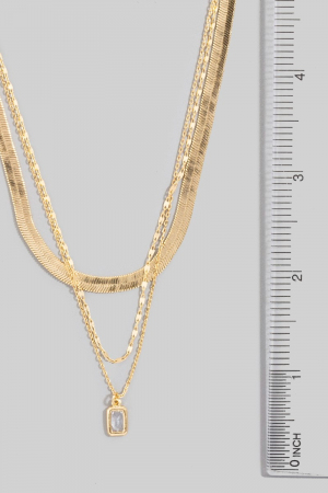 - This chain necklace introduces a stunning assorted three layered cubic zirconia charm style. Immerse yourself in fashion finesse with this statement chain necklace.
