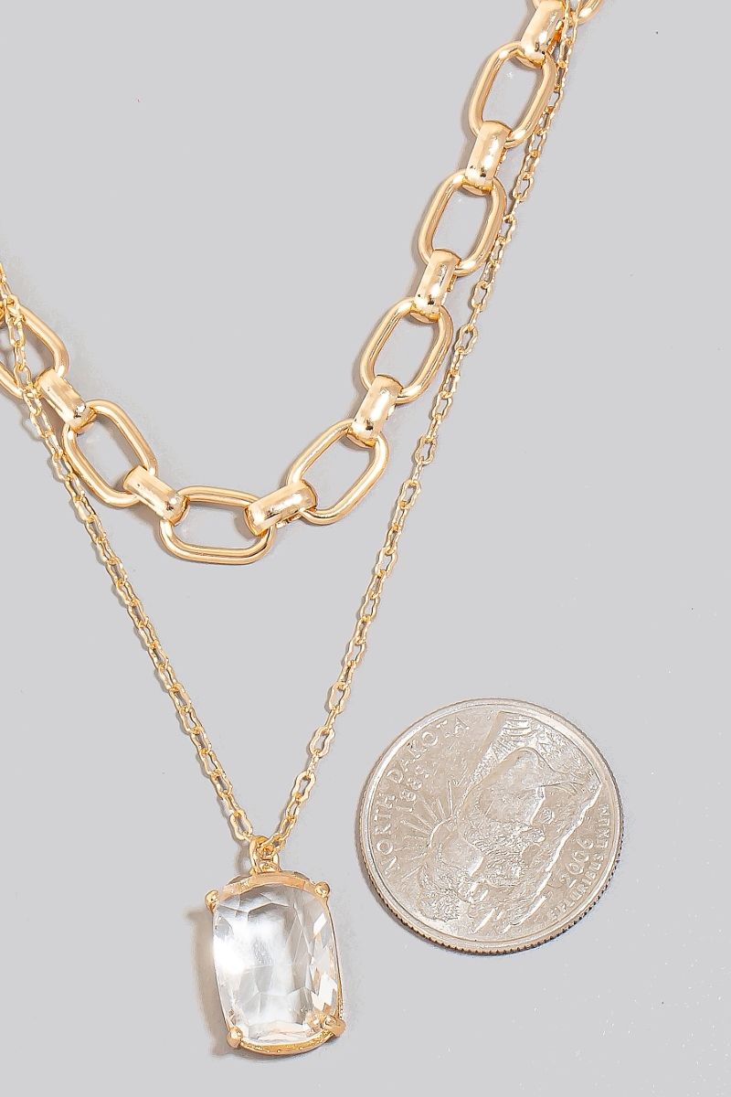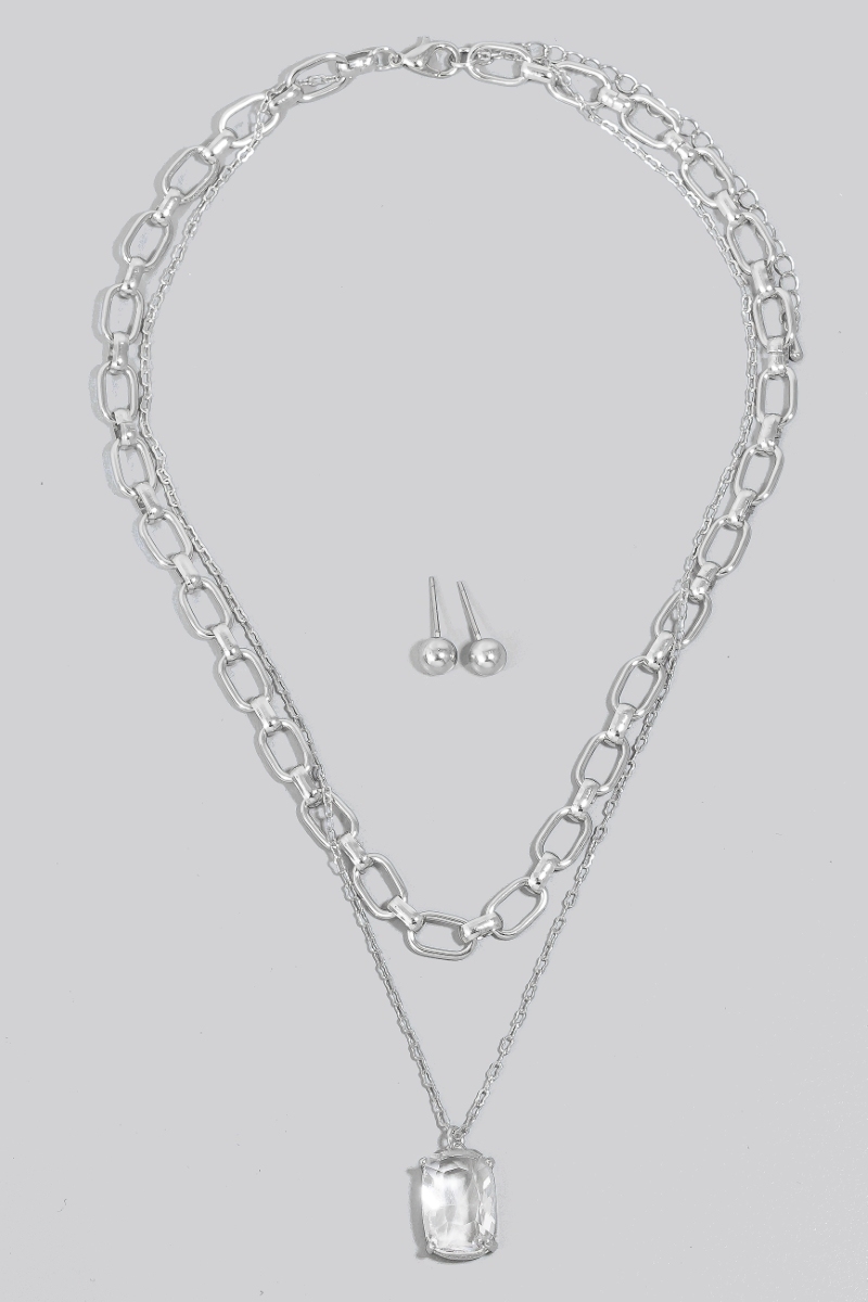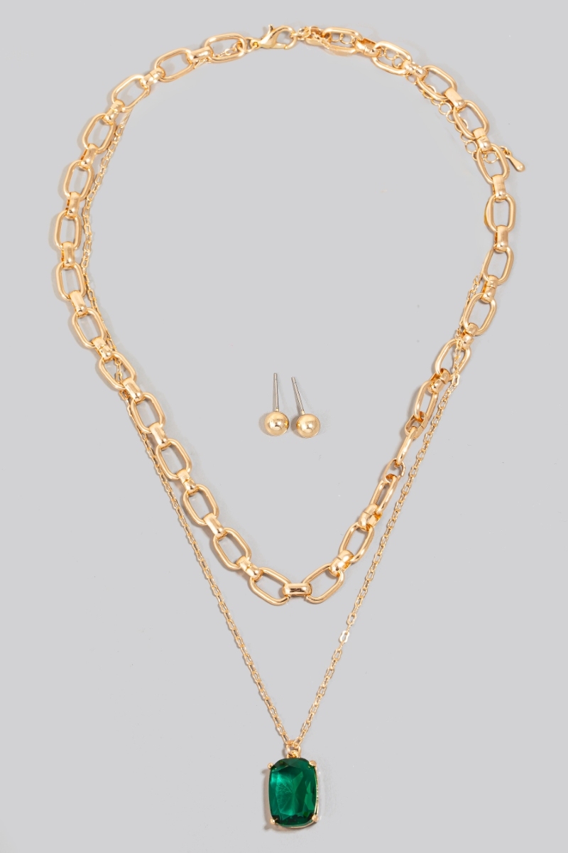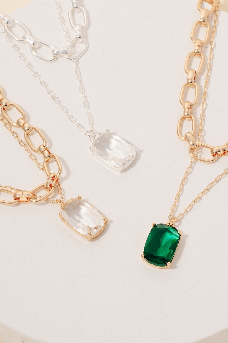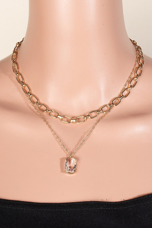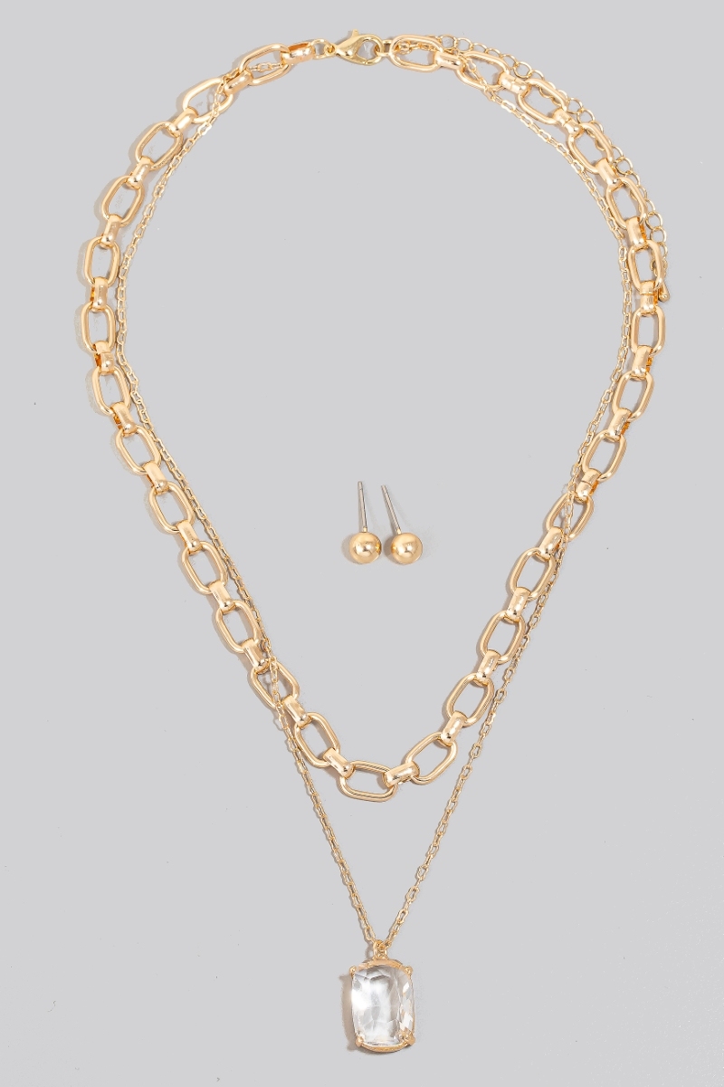 • This necklace set introduces a unique faceted gem pendant layered chains style. Embark on a journey of sartorial refinement as this necklace set effortlessly complements your fashion sense.