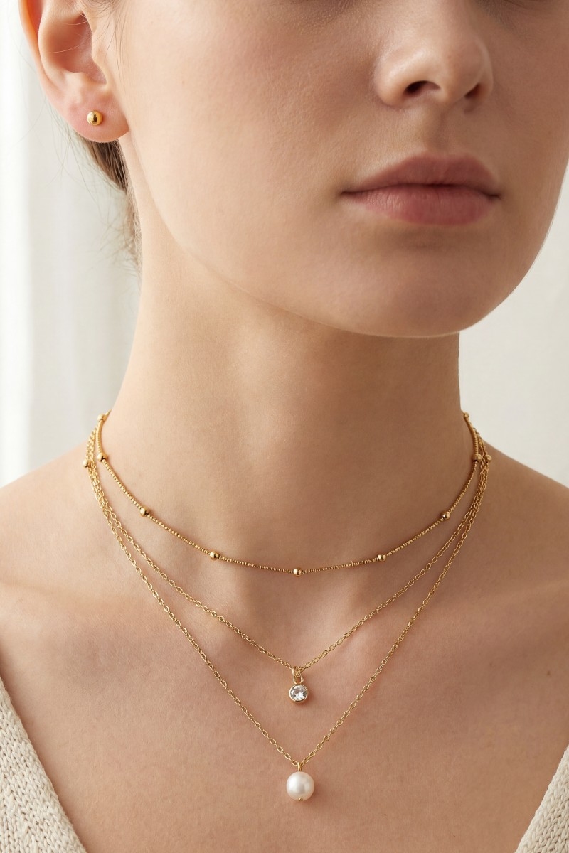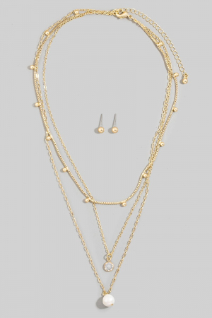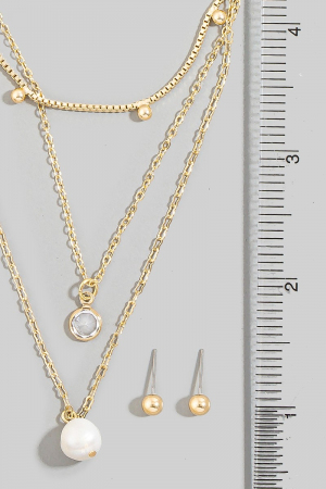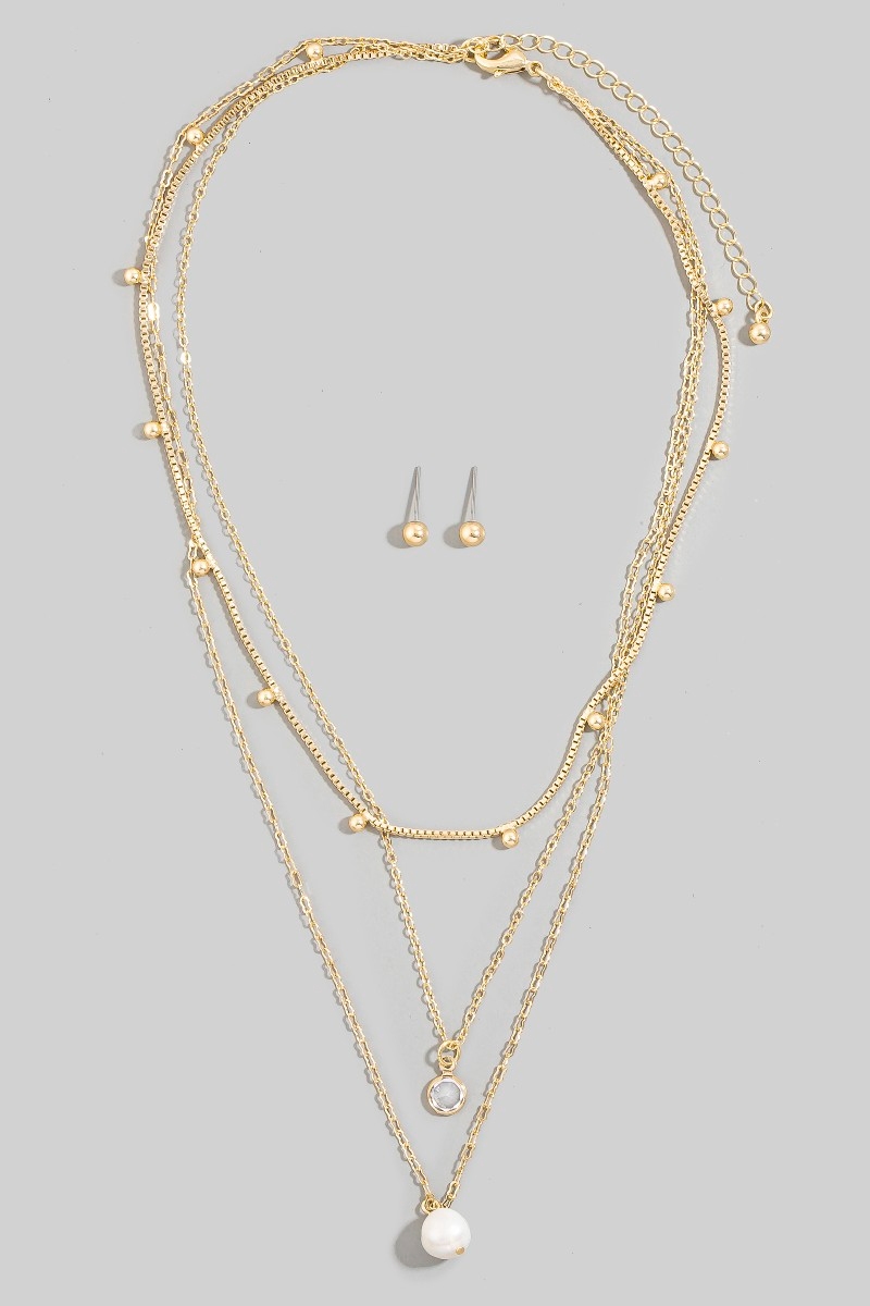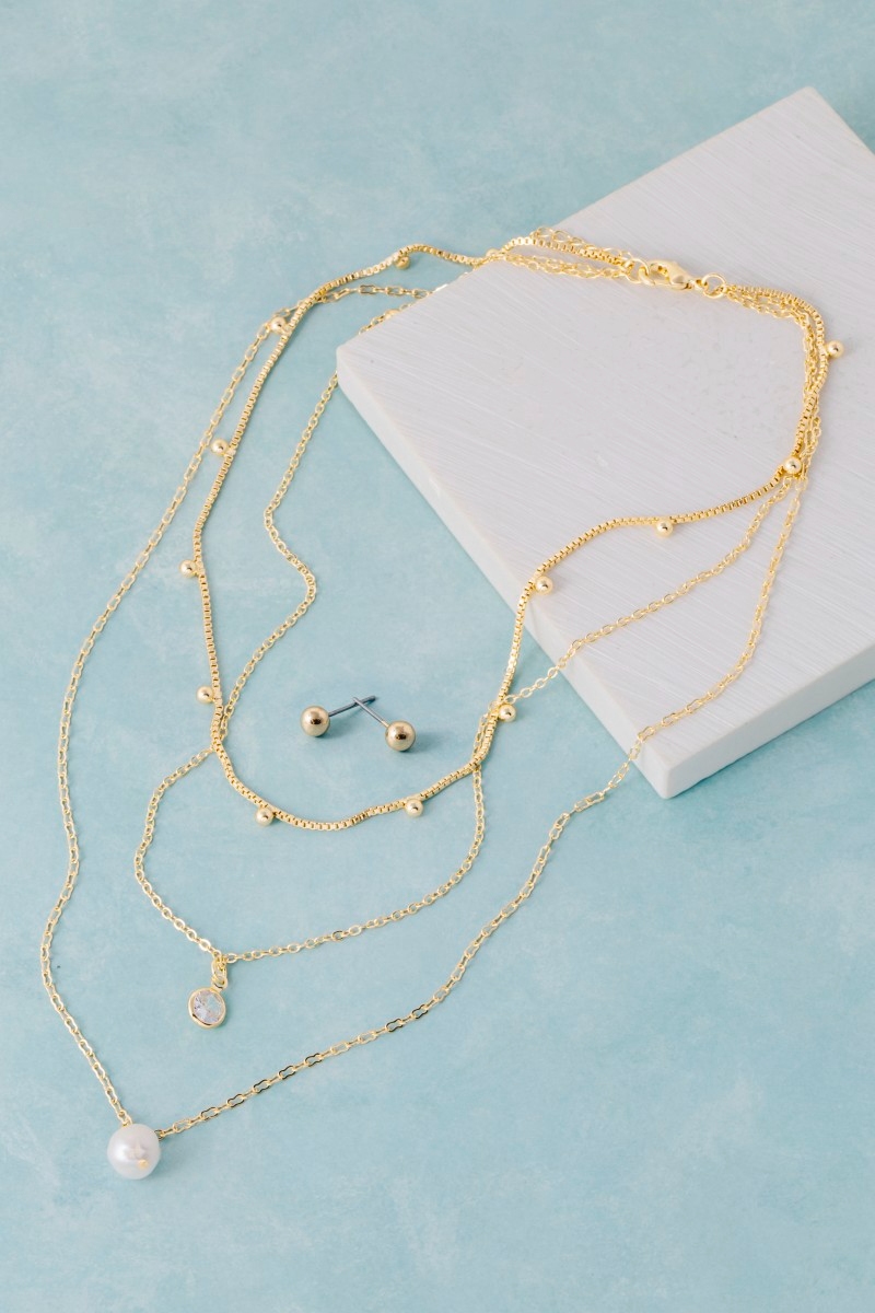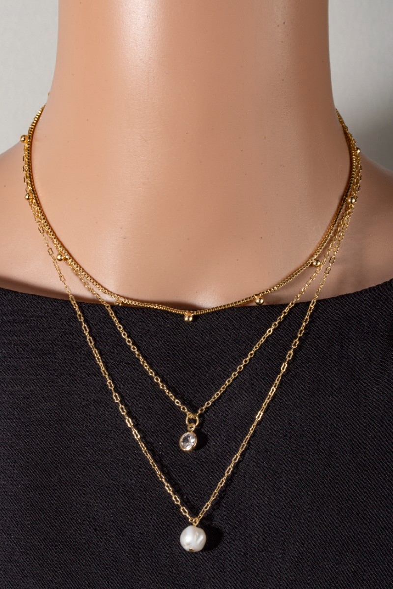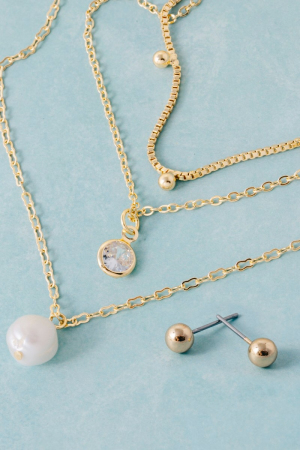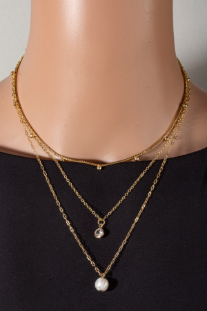 • This layered necklace showcases a unique gem and pearl pendants set style. Redefine your look effortlessly with this standout, on-trend piece.