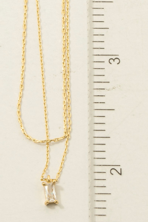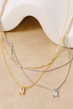 Three Layered Chain Cz Charm Necklace