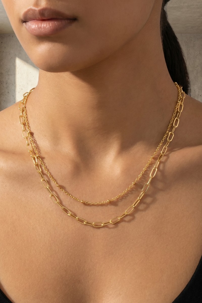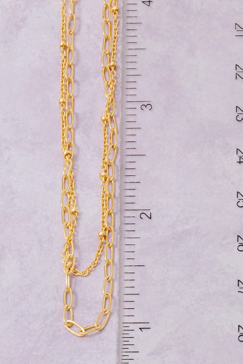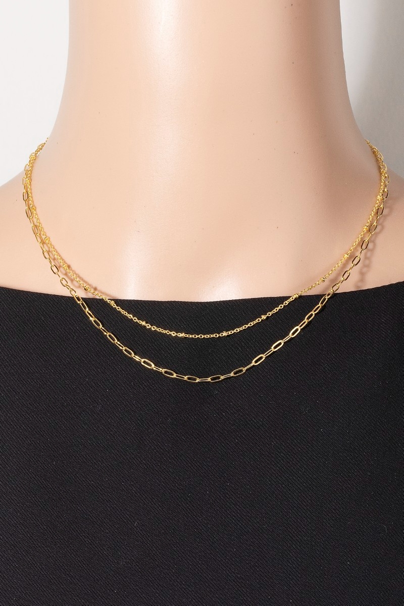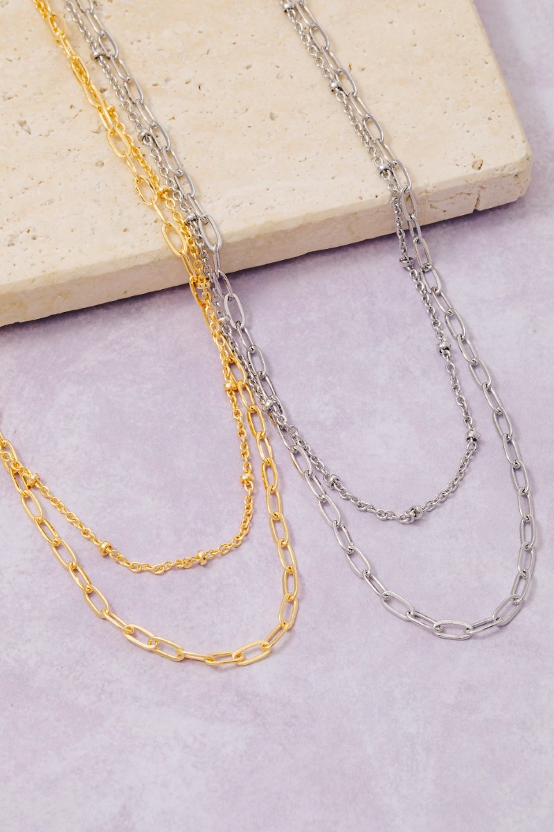 • This necklace introduces a stunning gold dipped layered chain link style. Revel in the intricate design that effortlessly distinguishes this necklace, making it a statement piece.