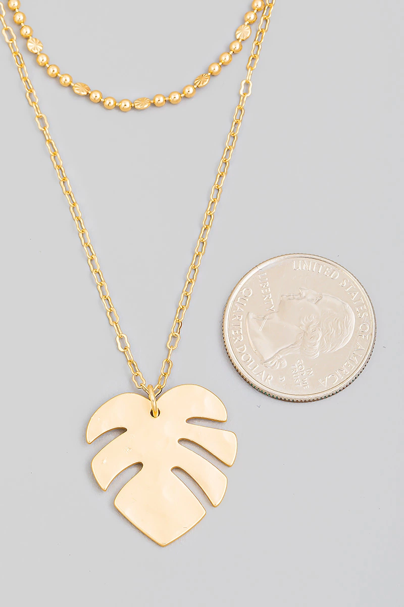 Gold Dipped Ridged Heart Pendant Layered Necklace