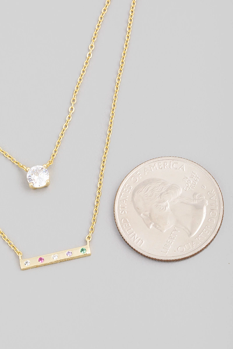 Assorted Three Layered Cz Charm Chain Necklace