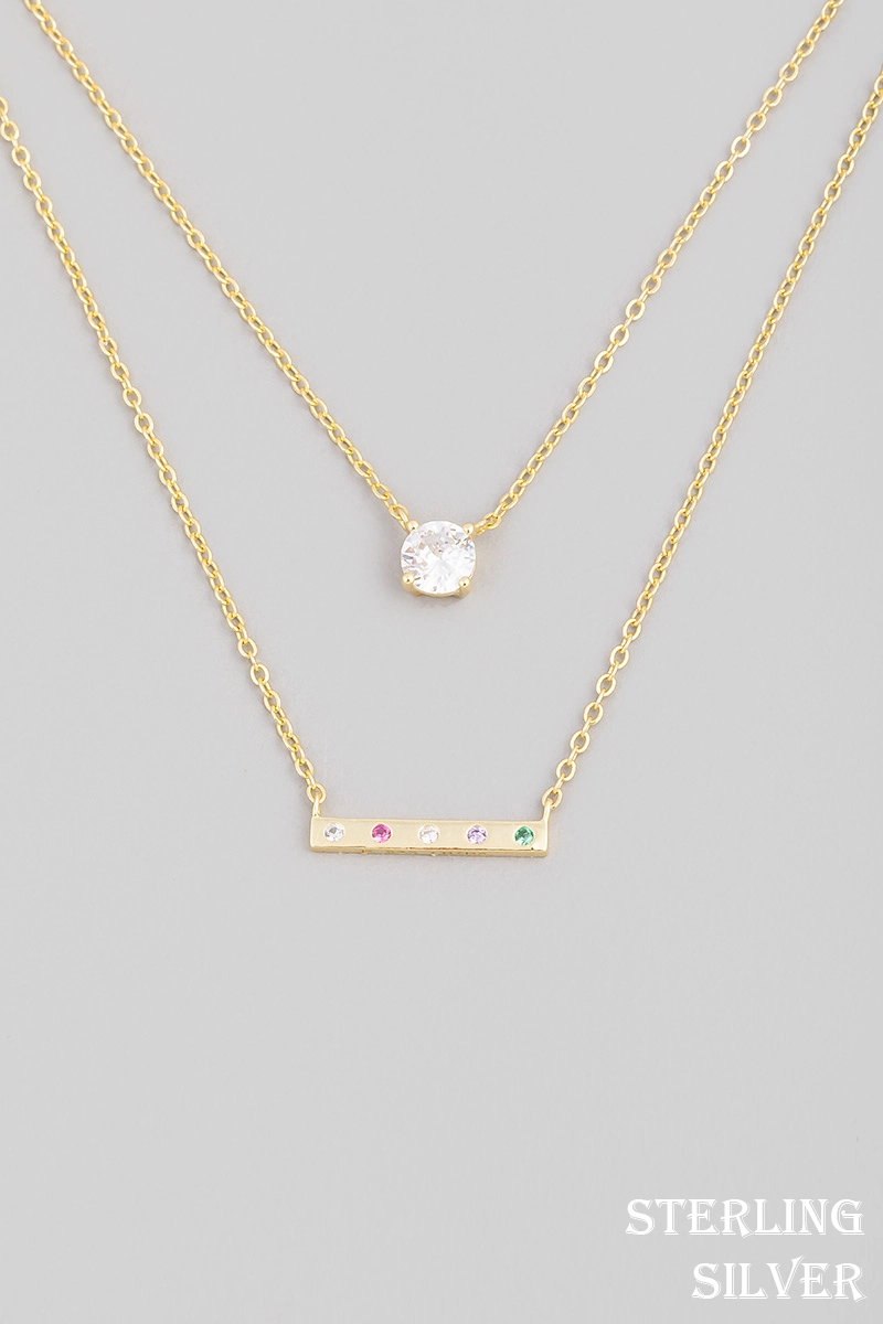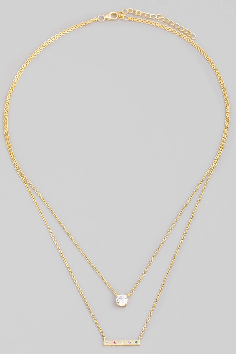Three Layered Chain Cz Charm Necklace
