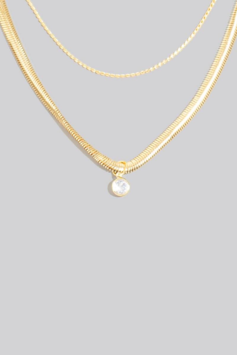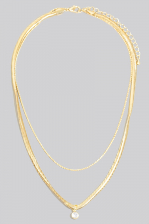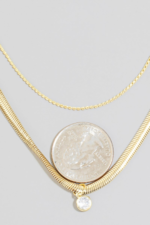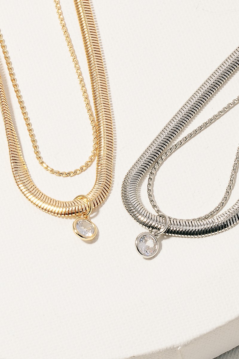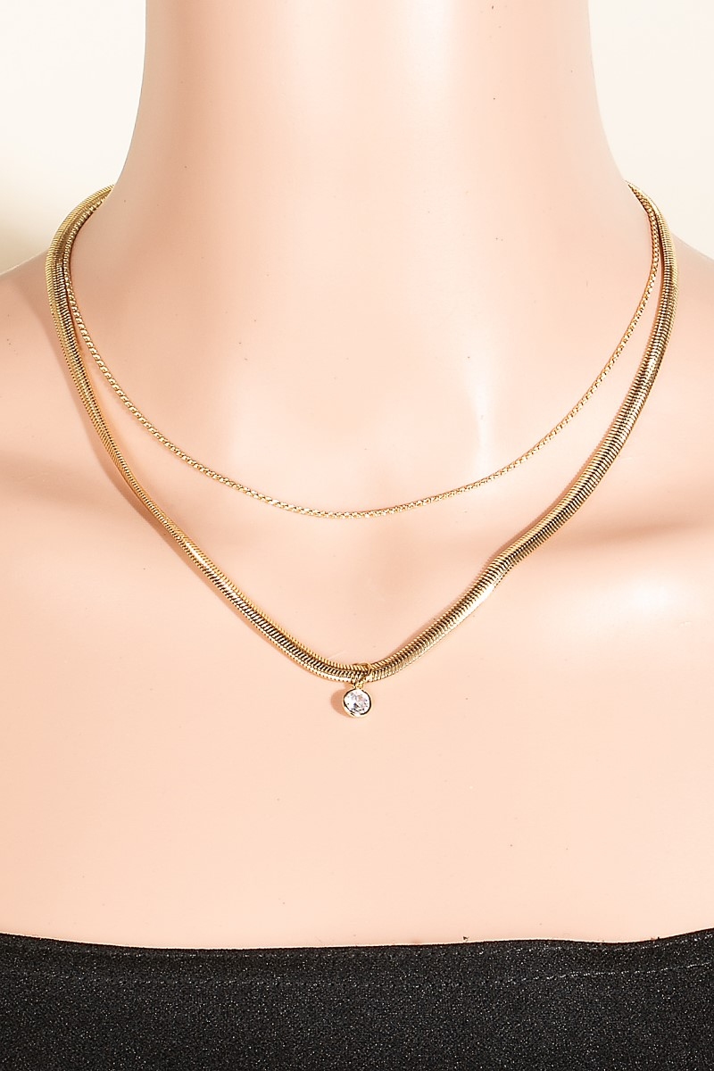 - This necklace displays a vibrant round cubic zirconia pendant layered chains style. Discover the perfect balance of subtlety and flair as this necklace effortlessly completes your look.