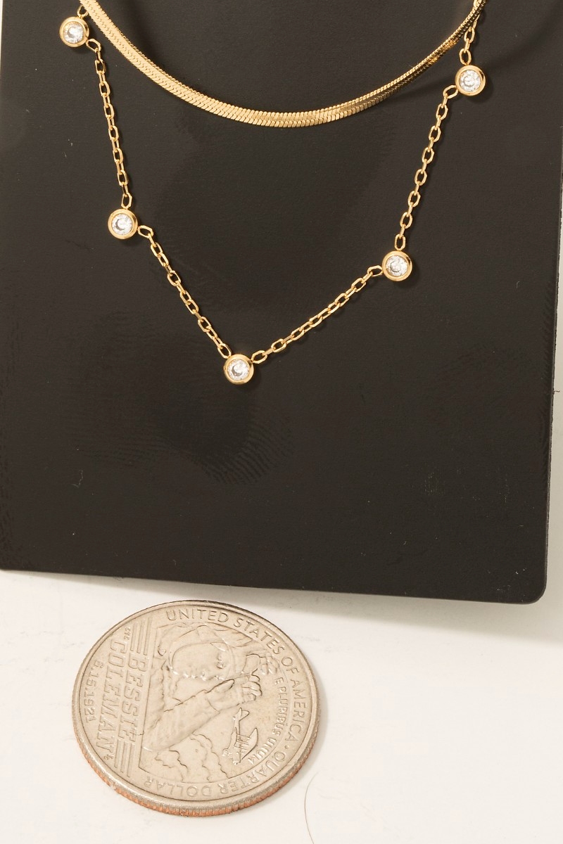 - This necklace showcases a timeless layered snake chain and lariat style. Witness the transformative power of accessories as this piece effortlessly redefines your fashion narrative.