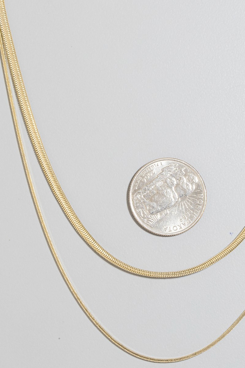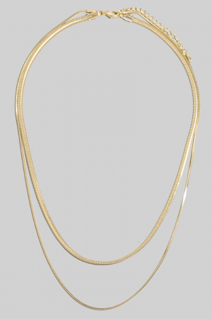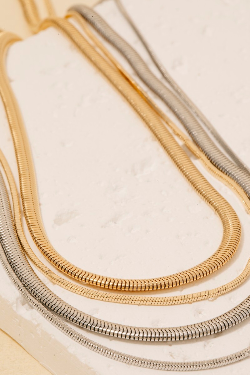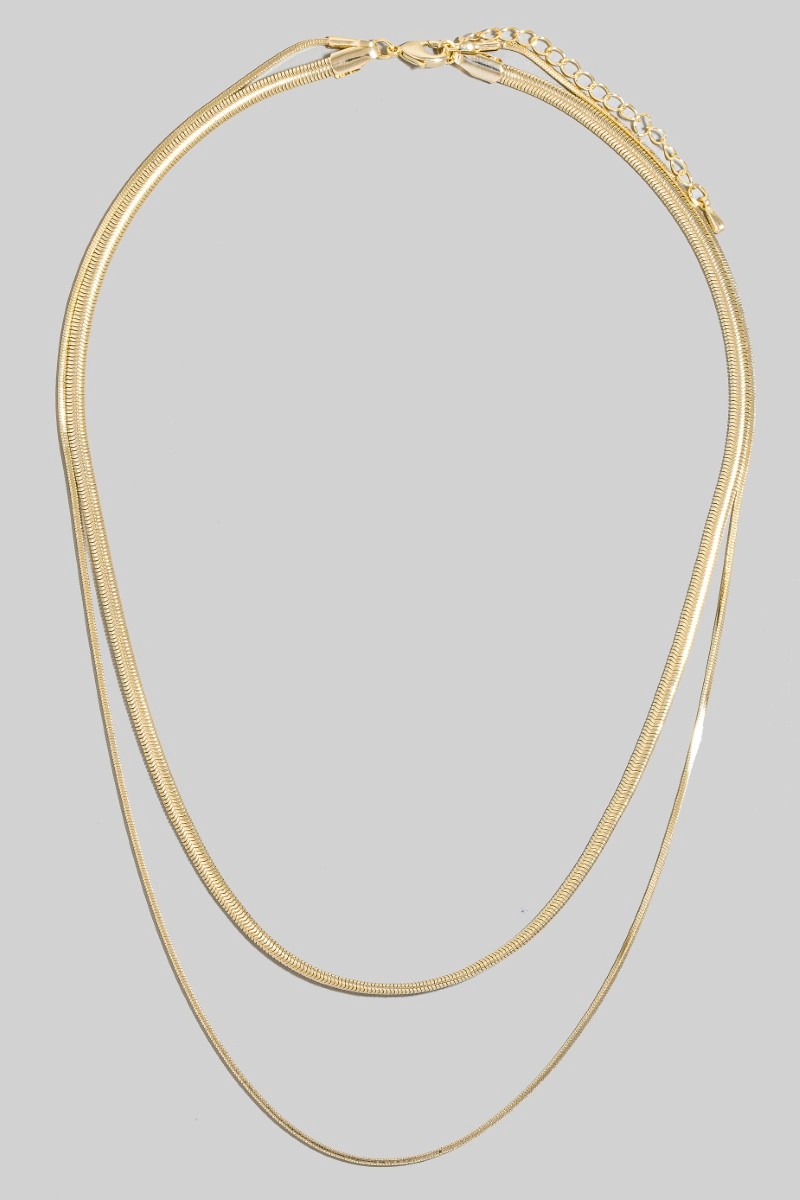 - This chain necklace introduces a unique layered snake style. Elevate your ensemble with this chain necklace that effortlessly captures the essence of refined fashion.