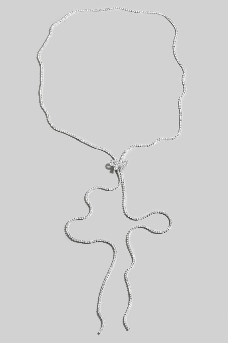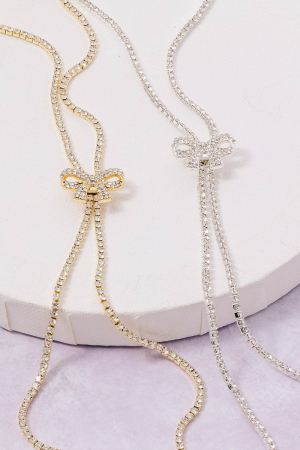 - This necklace brings a unique pave ribbon bow adjustable slider pendant style. Celebrate individuality with this necklace that effortlessly expresses your unique sense of style.