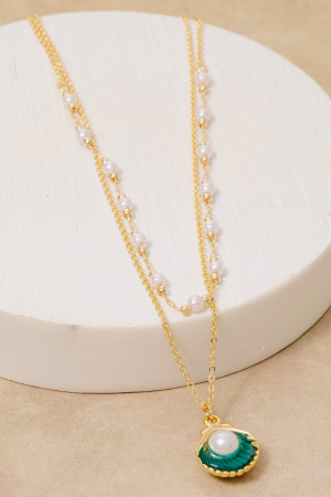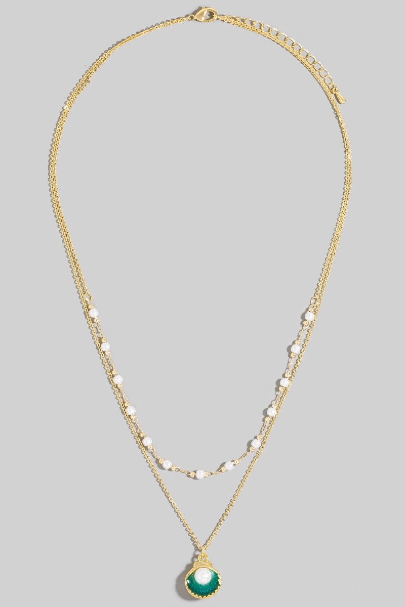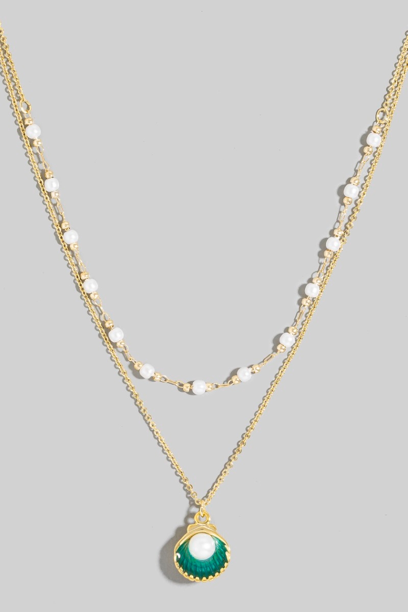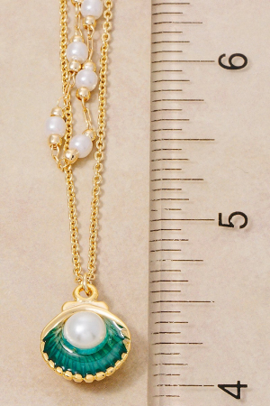• This chain necklace brings a stunning acrylic pearl clam shell pendant and charms layered style. Celebrate the art of accessorizing with this piece that effortlessly encapsulates modern trends.
