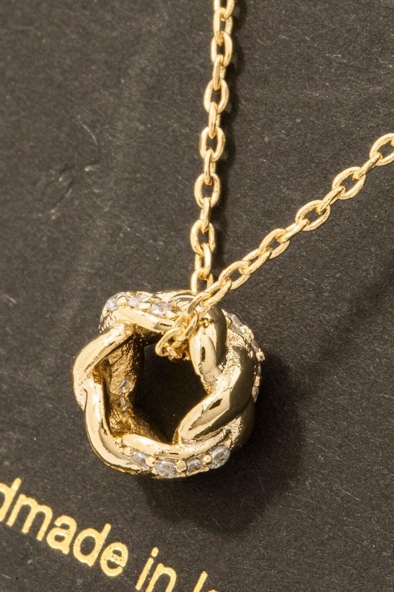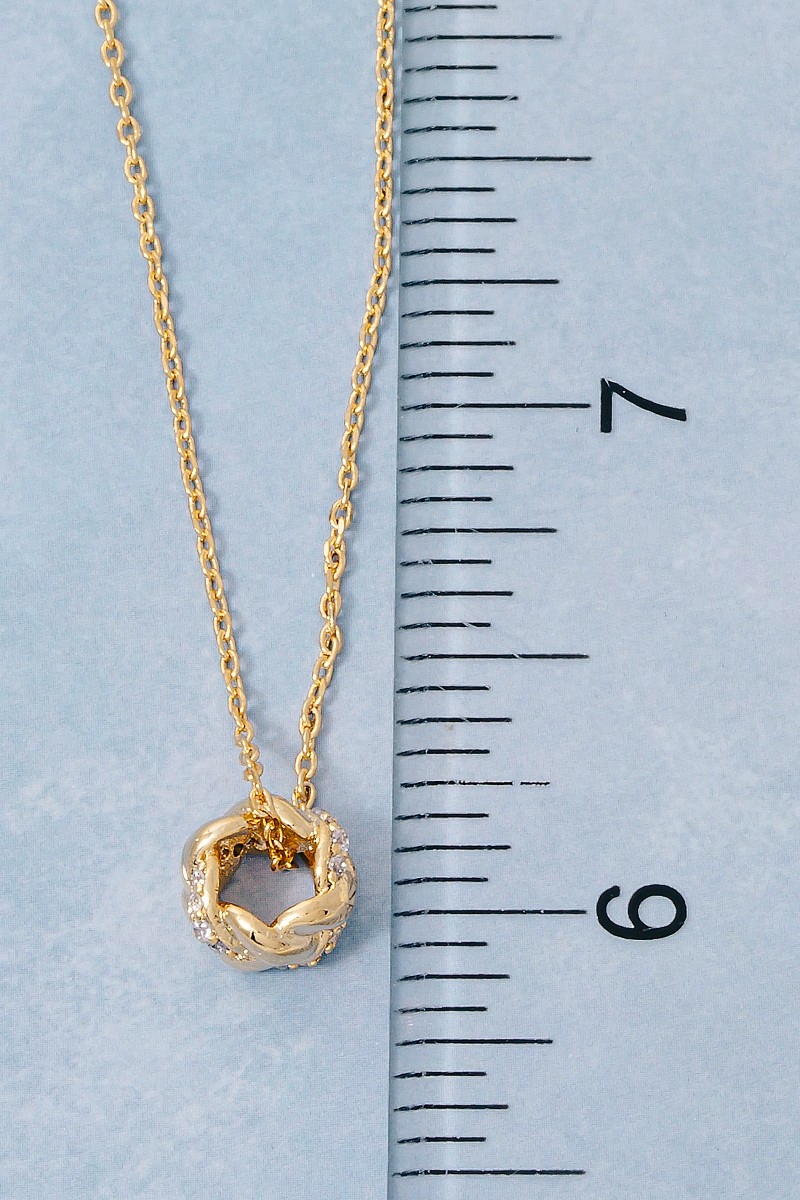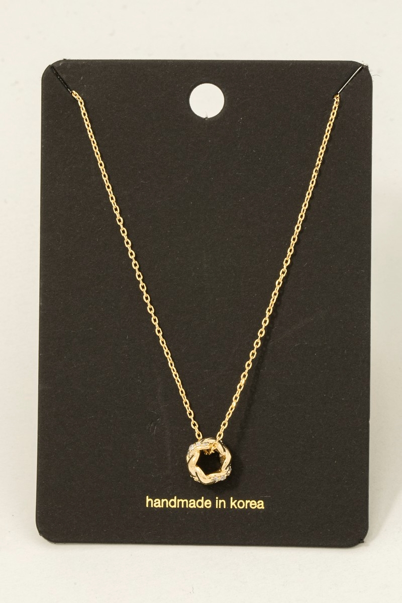 - This necklace features a fashionable circle twist ring pendant style. Elevate your ensemble with this chic, timeless necklace.