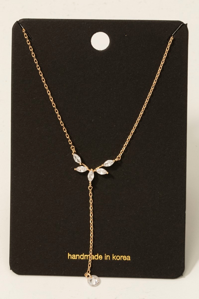 - This chain necklace introduces a unique cz leaf gems lariat y style. Celebrate individuality with this chain necklace that effortlessly expresses your unique sense of style.