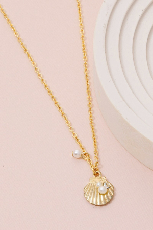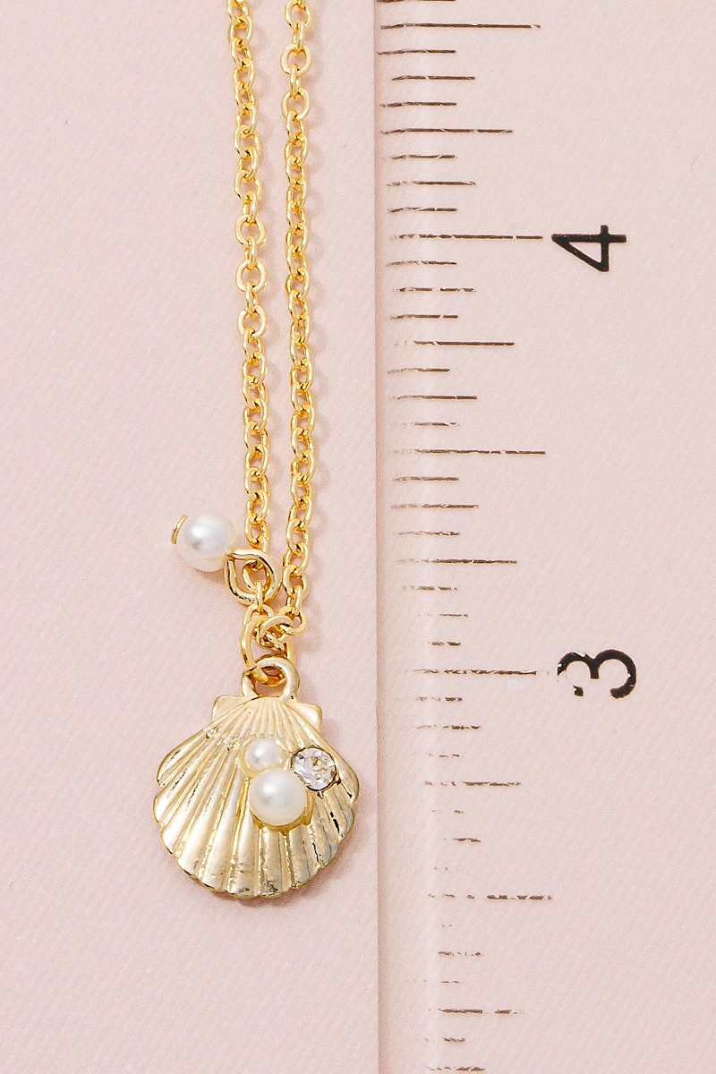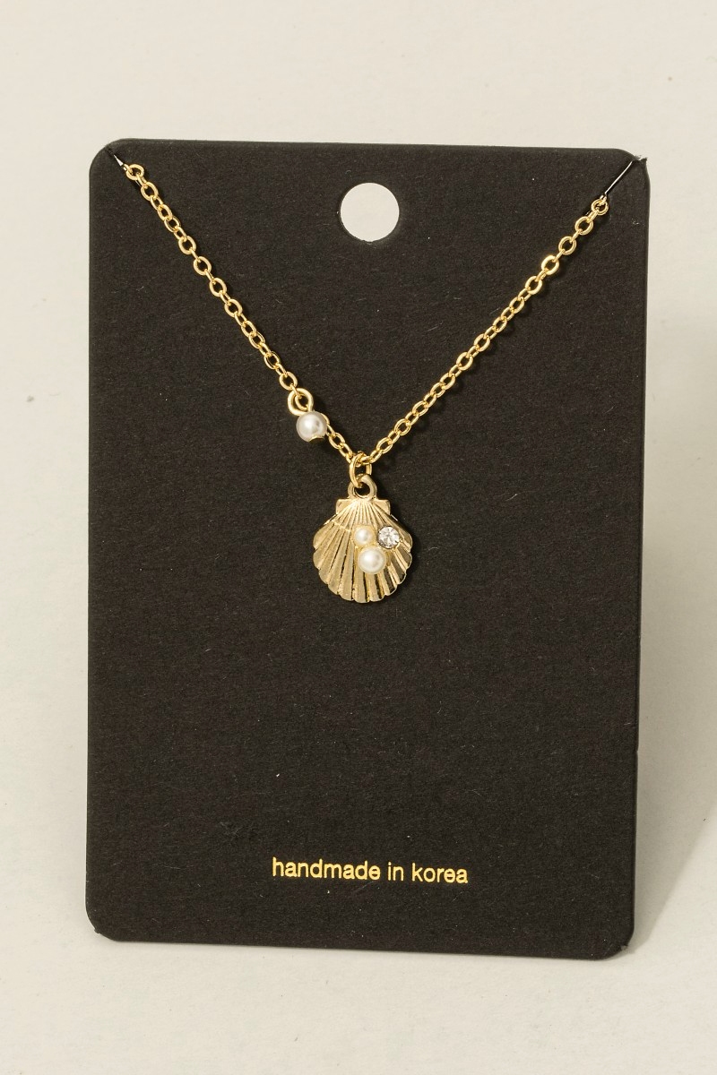 - This necklace brings a unique cz pearl seashell charm style. Immerse yourself in fashion finesse with this statement necklace.