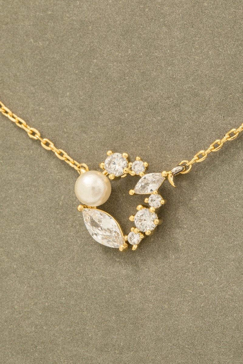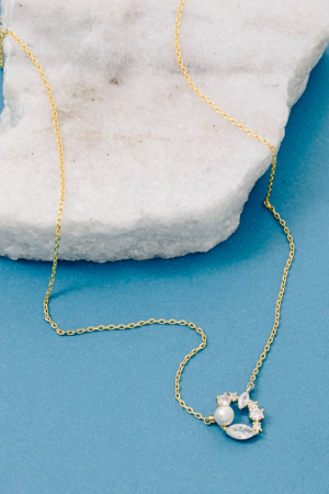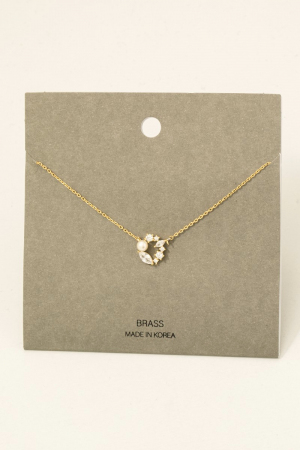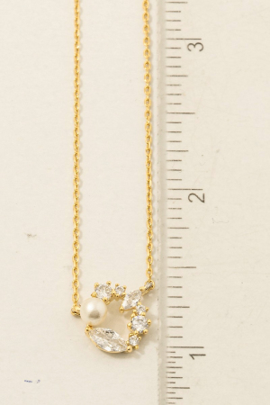 • This necklace displays a fashionable pearl and gems hoop pendant style. Unveil modern elegance with this subtly intricate necklace.