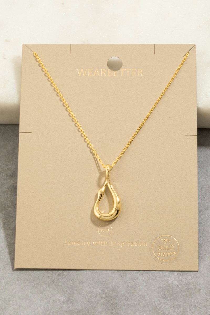 • This pendant necklace showcases a unique gold dipped abstract teardrop style. Redefine your look effortlessly with this standout, on-trend piece.