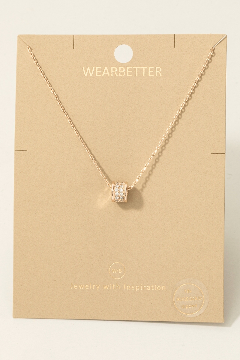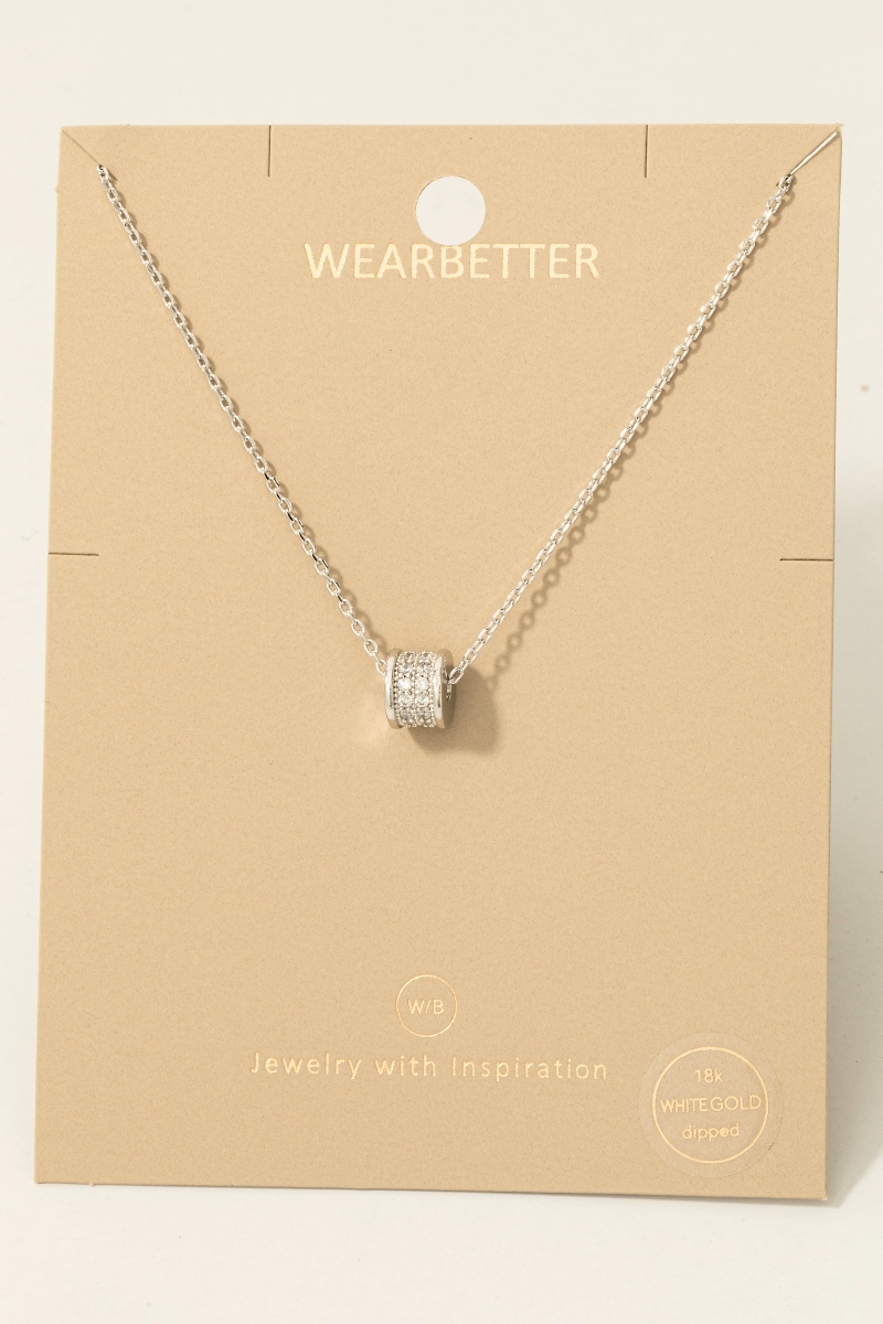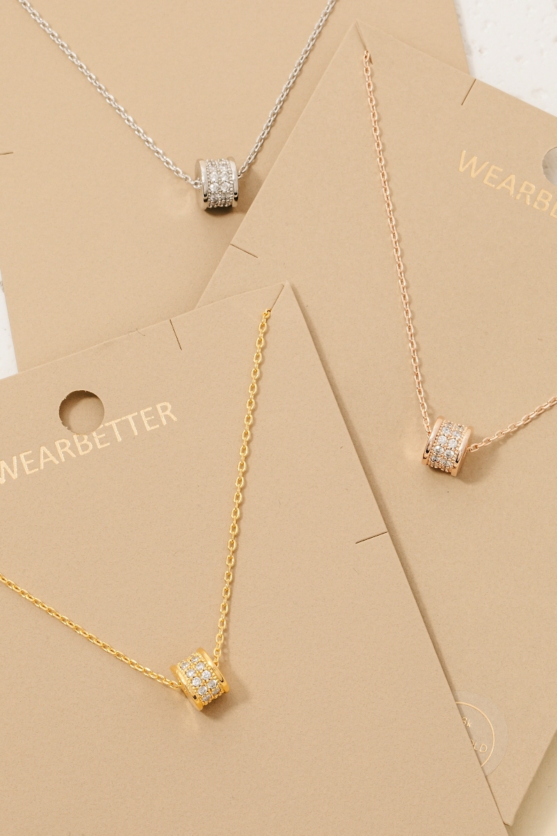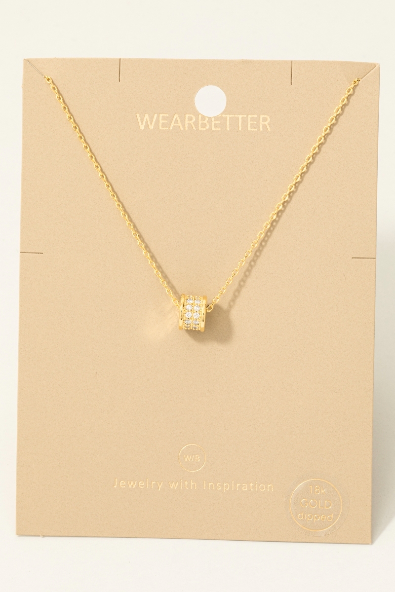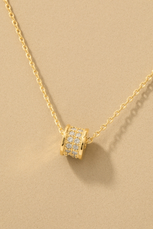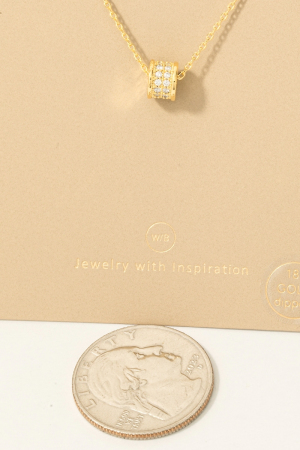 - This necklace showcases a timeless gold dipped cubic zirconia pave cylinder pendant style. Experience a subtle blend of modernity and classic charm as this necklace effortlessly adorns your ensemble.
