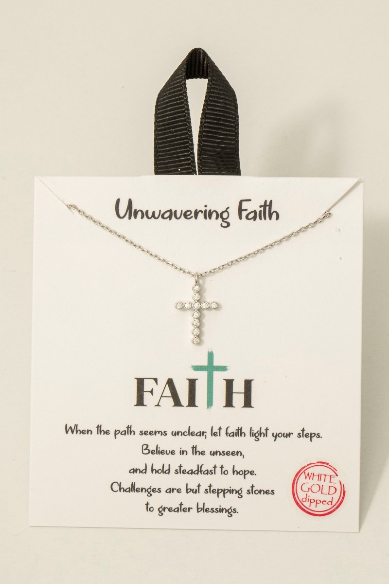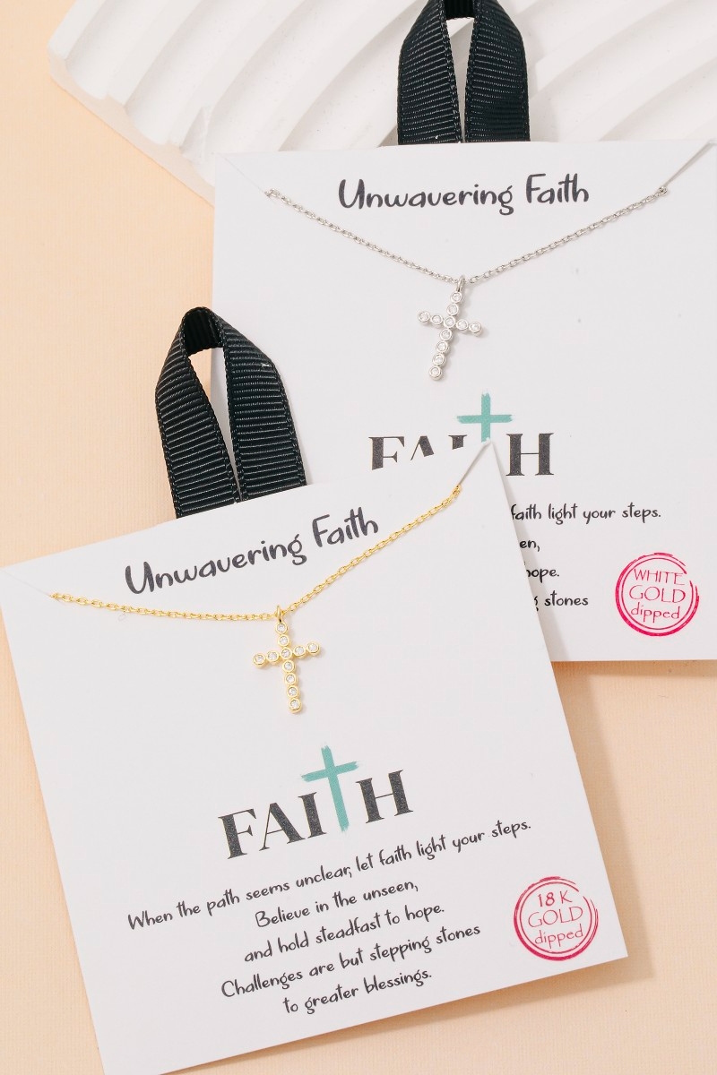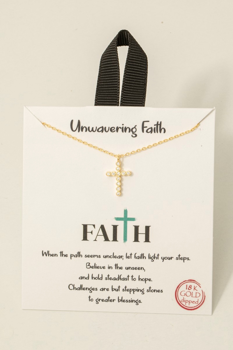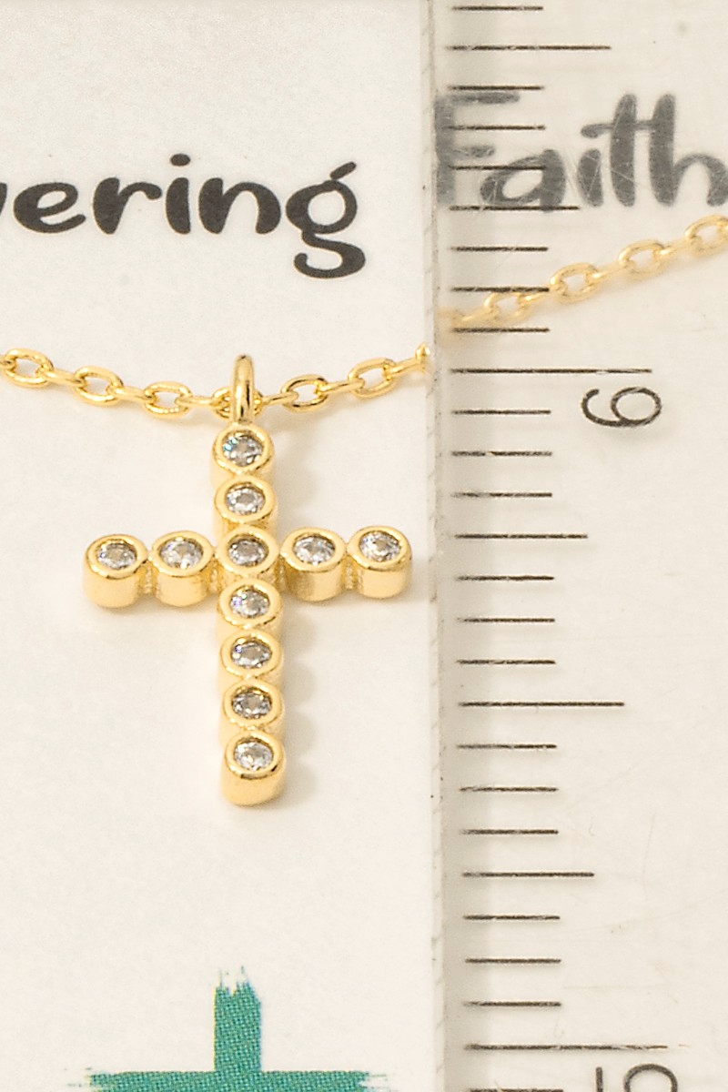 • This necklace showcases a unique gold dipped cubic zirconia pave dainty cross pendant style. Immerse yourself in fashion finesse with this statement necklace.