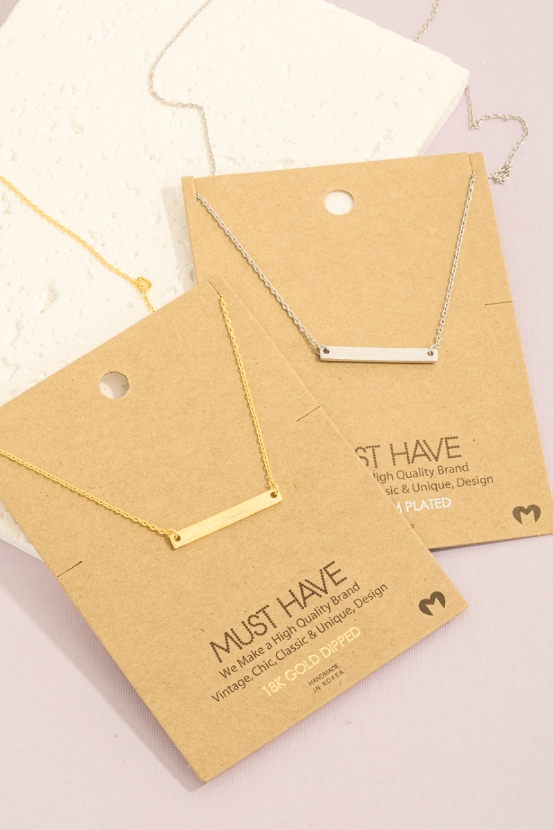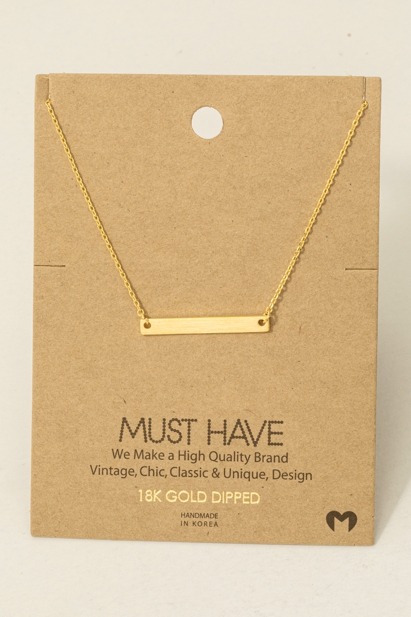 • This necklace displays a vibrant gold dipped dainty bar pendant style. Unveil a new dimension of sophistication as this necklace effortlessly enhances the elegance of your ensemble.