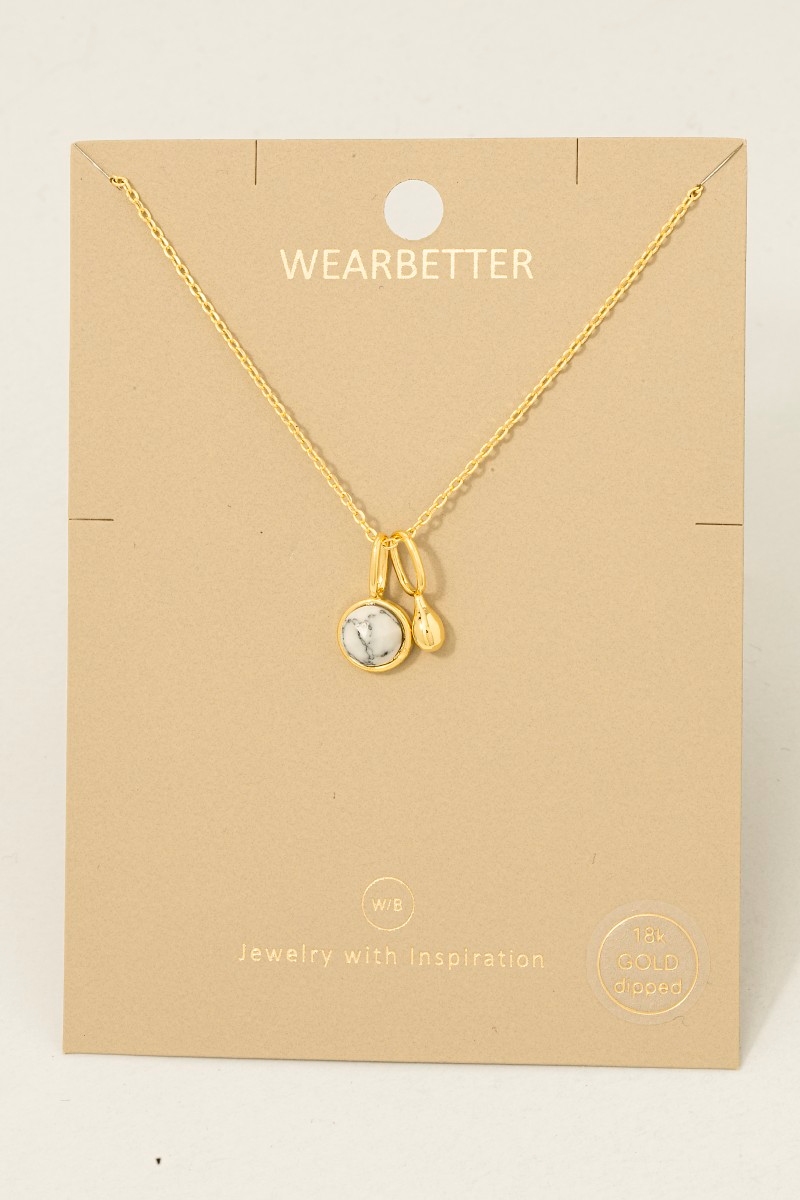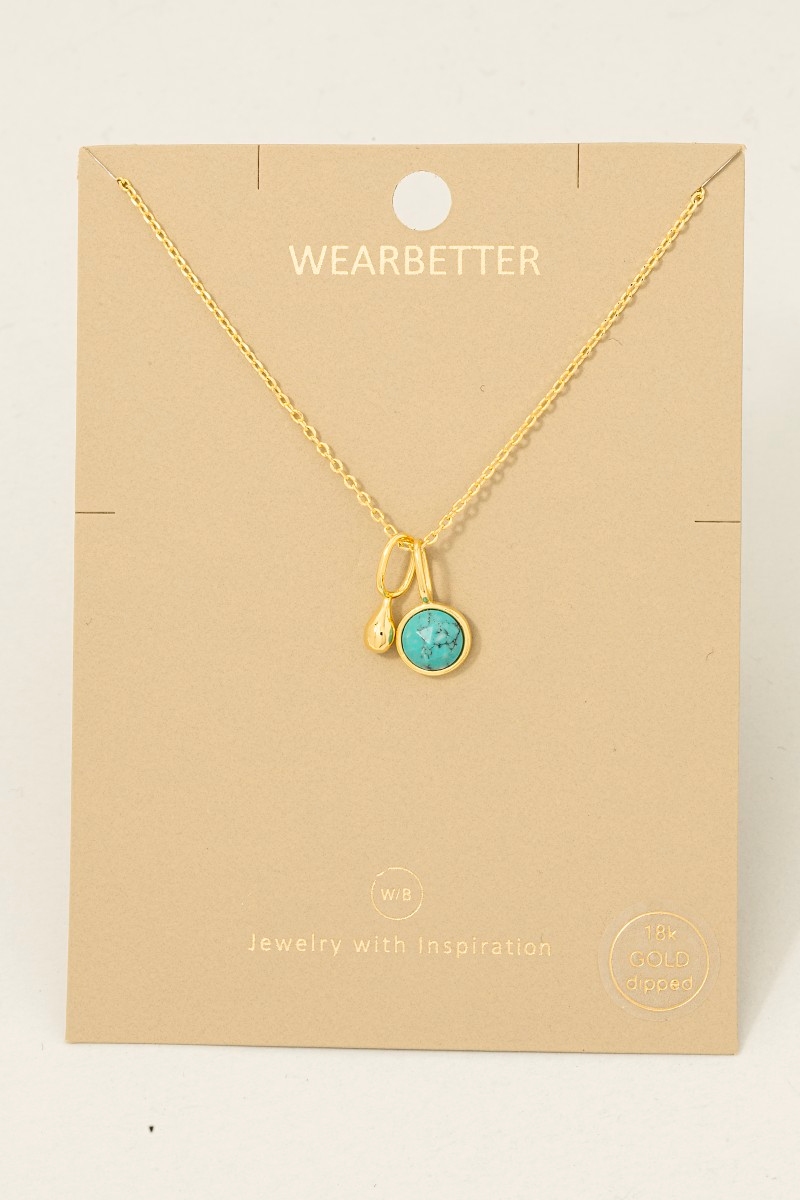 • This necklace displays a vibrant gold dipped mini gemstone and tear pendant style. Delight in the intricate details that make this necklace an essential element in expressing your fashion identity.