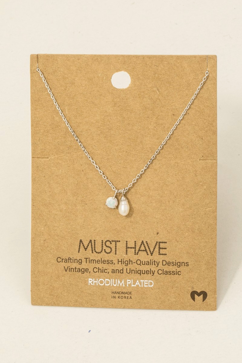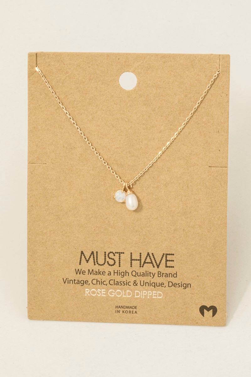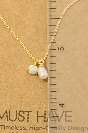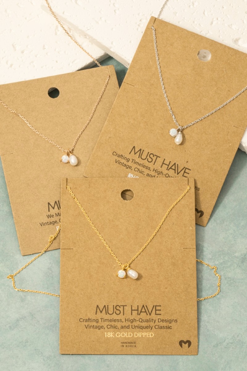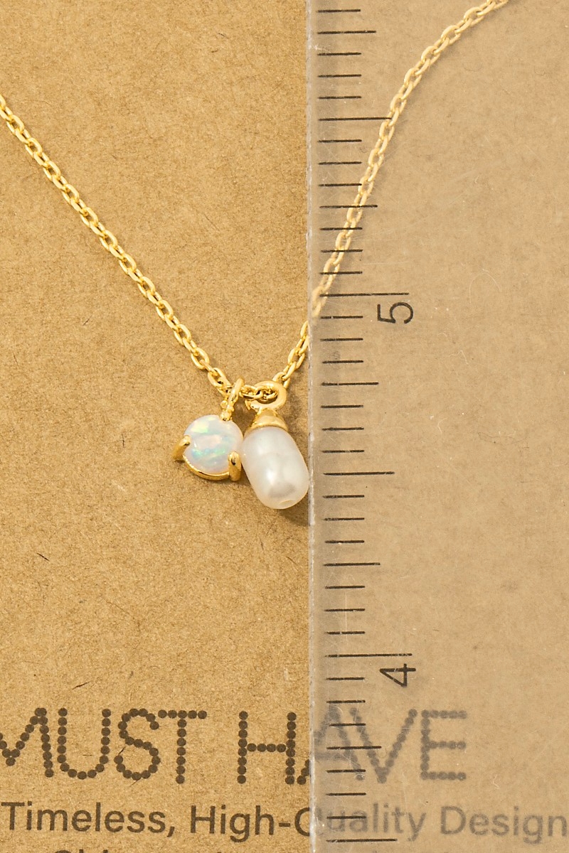 • This chain necklace brings a luxurious gold dipped opal and pearl charms style. Elevate your ensemble with this chic, timeless chain necklace.