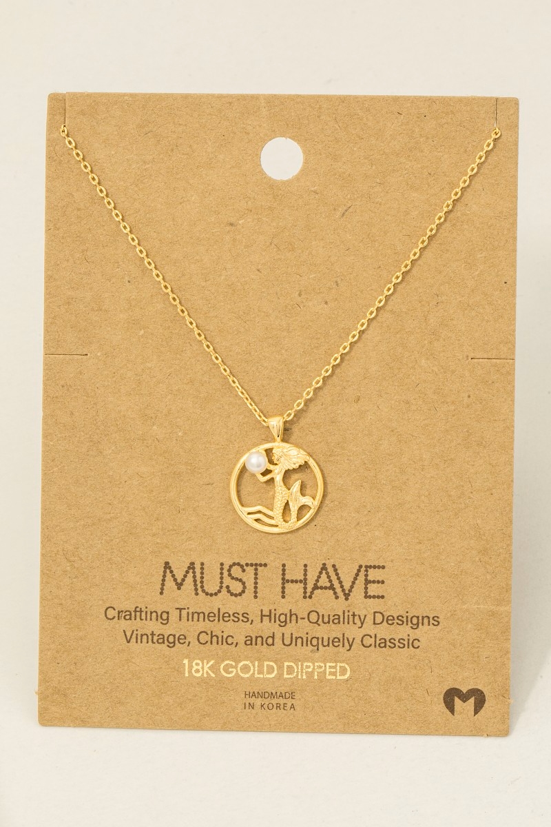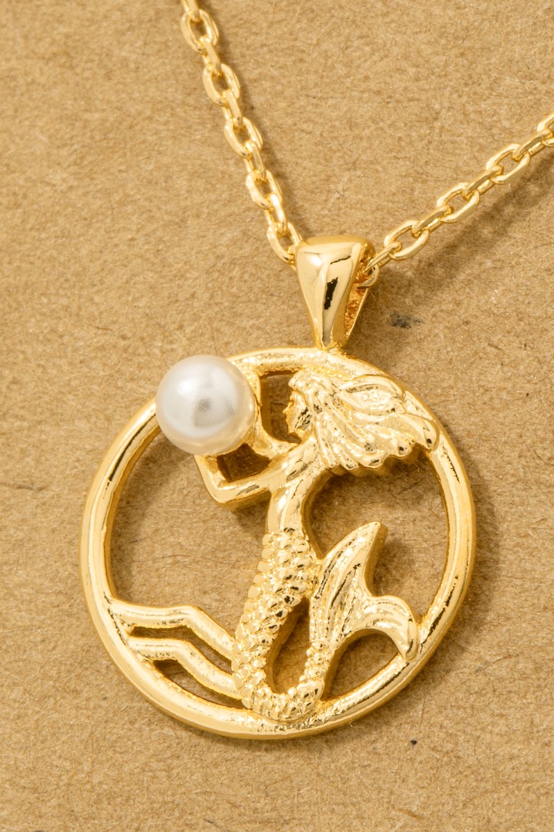 • This necklace features a fashionable gold dipped pearl mermaid pendant style. Elevate your ensemble with this chic, timeless necklace.