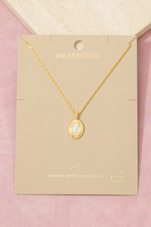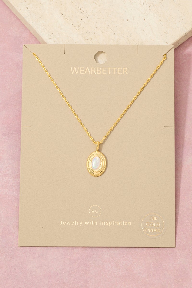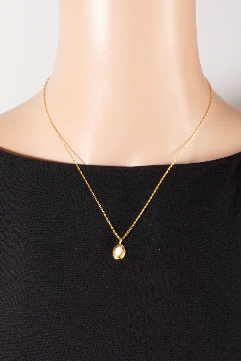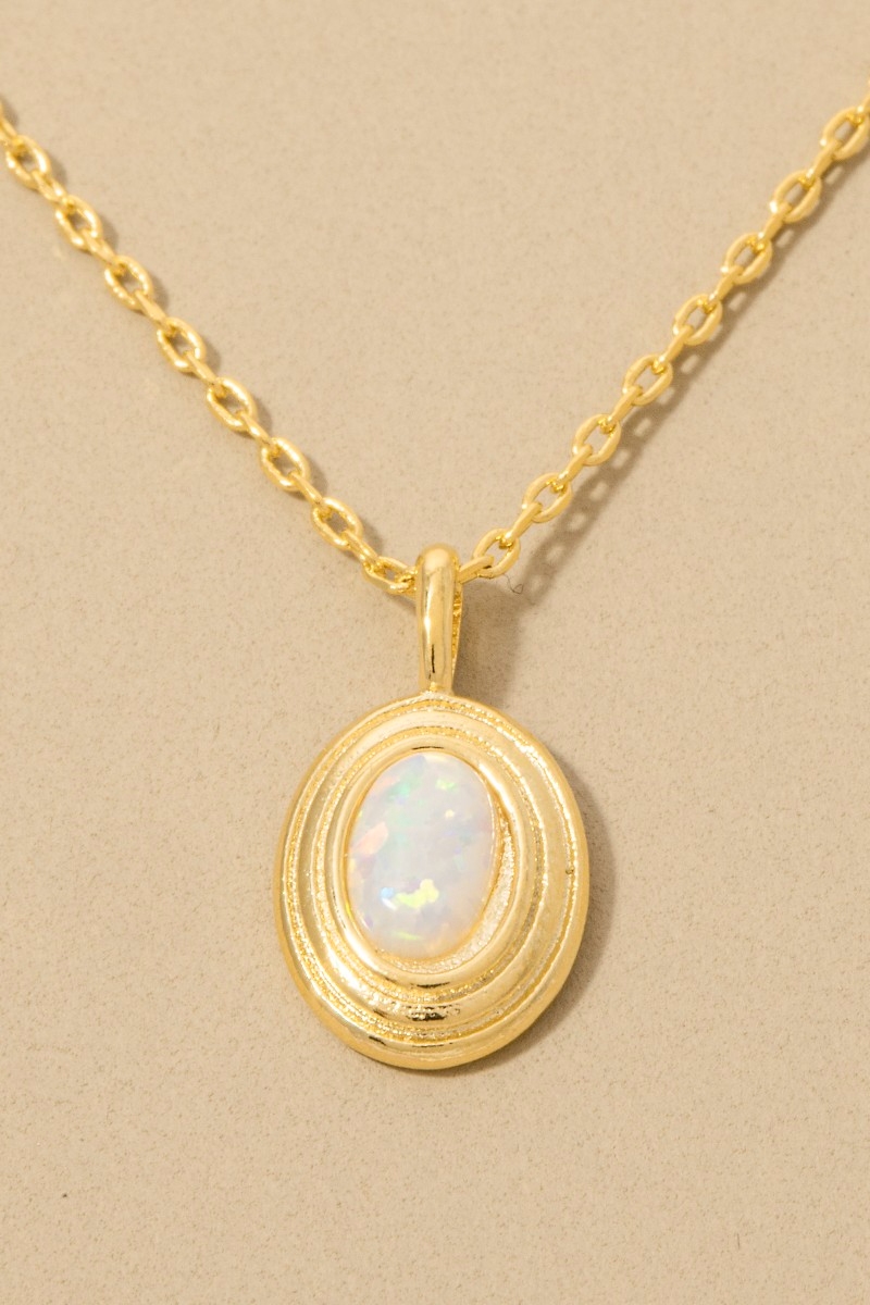 • This pendant necklace showcases a timeless gold dipped vintage oval opal style. Indulge in the allure of exquisite craftsmanship as this pendant necklace effortlessly adds a touch of luxury to your attire.