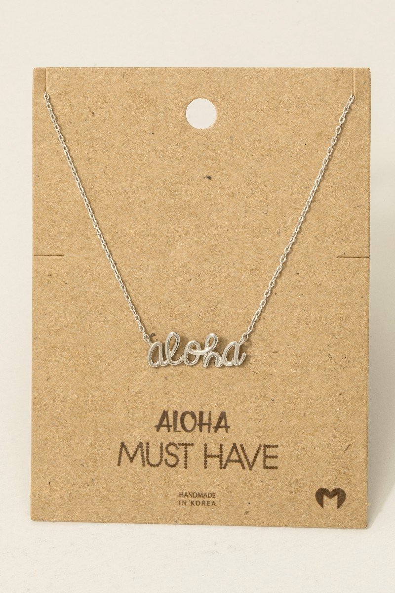- This trending necklace showcases a unique handwritten aloha print necklace style. Celebrate the art of accessorizing with this piece that effortlessly encapsulates modern trends.