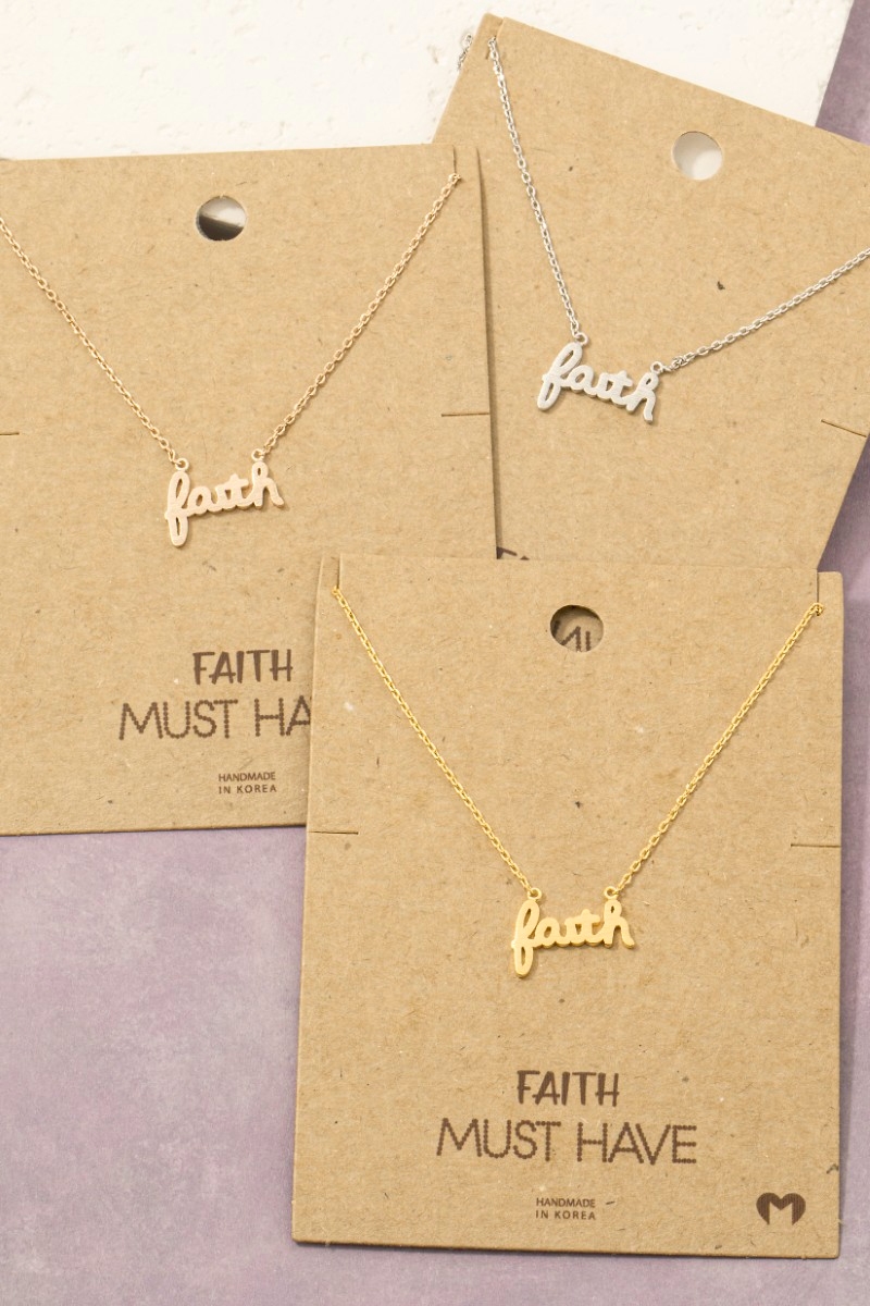 • This trending necklace brings a stunning handwritten faith pendant necklace style. Discover the perfect balance of subtlety and flair as this trending necklace effortlessly completes your look.