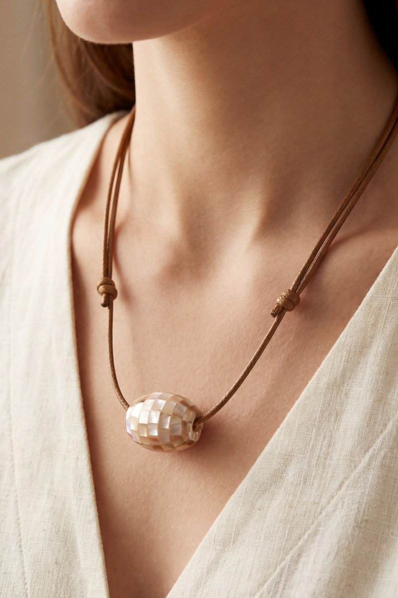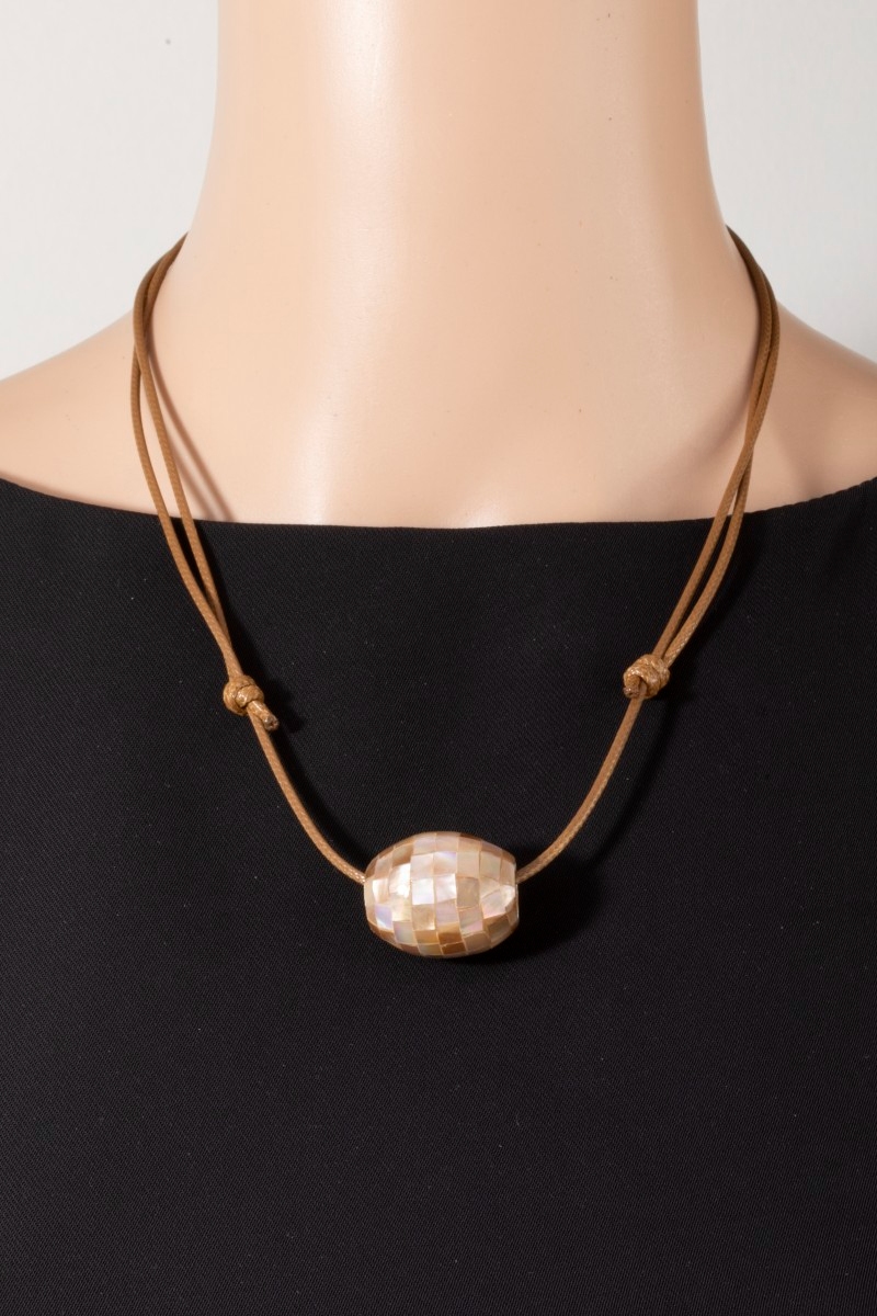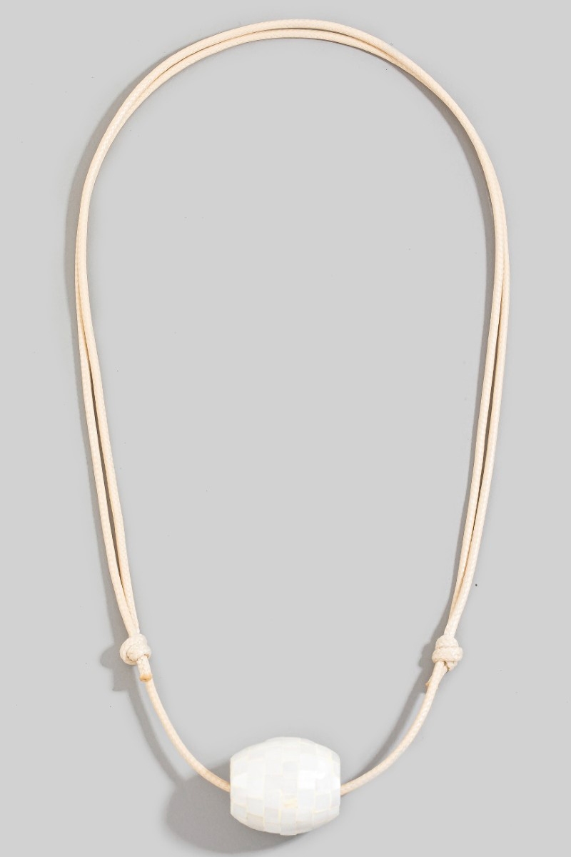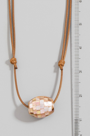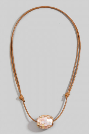 • This pendant necklace brings a unique mother of pearl mosaic bead pendant adjustable cord necklace style. Experience the joy of accessorizing with this piece that effortlessly combines versatility and charm.