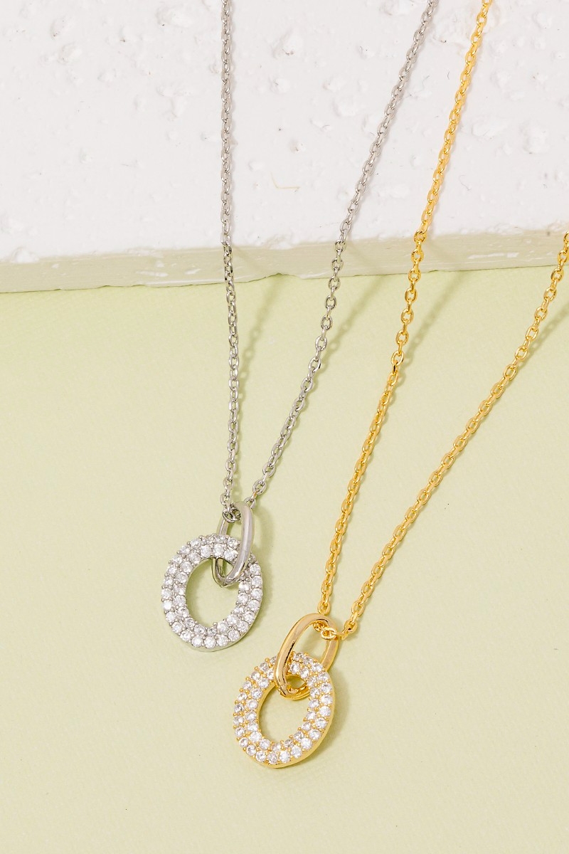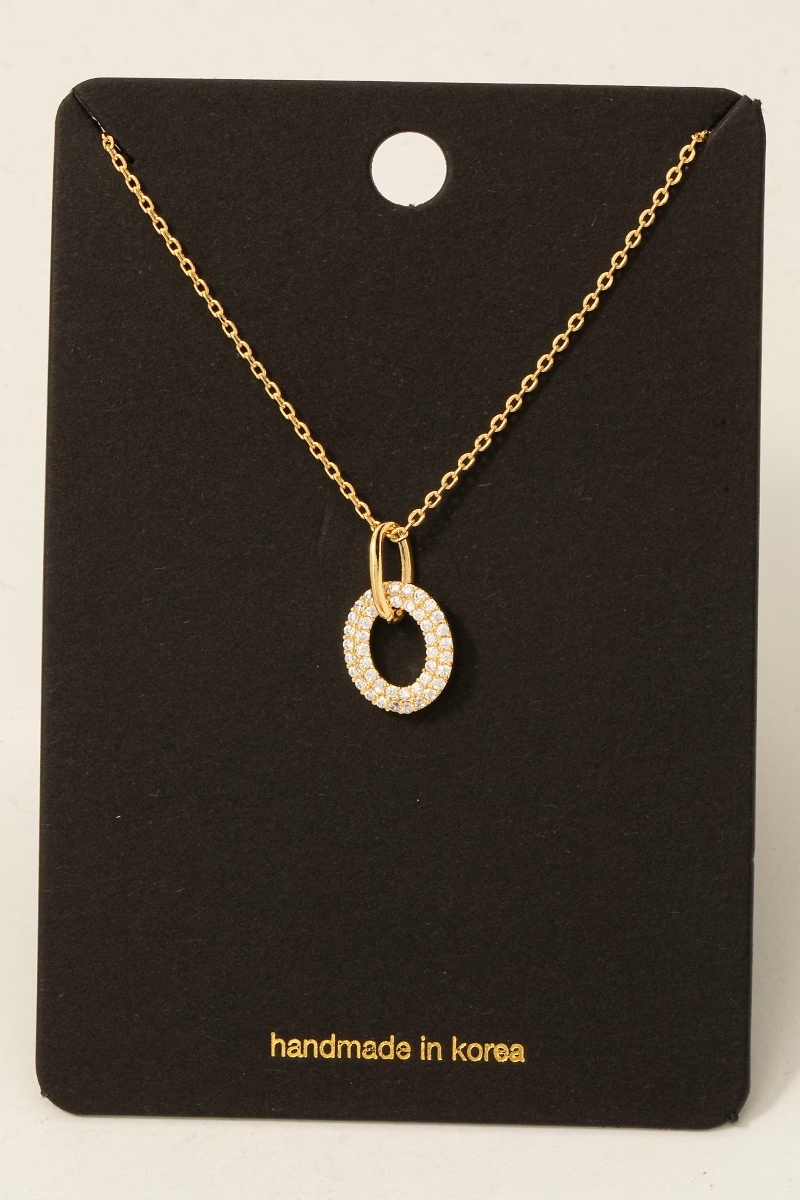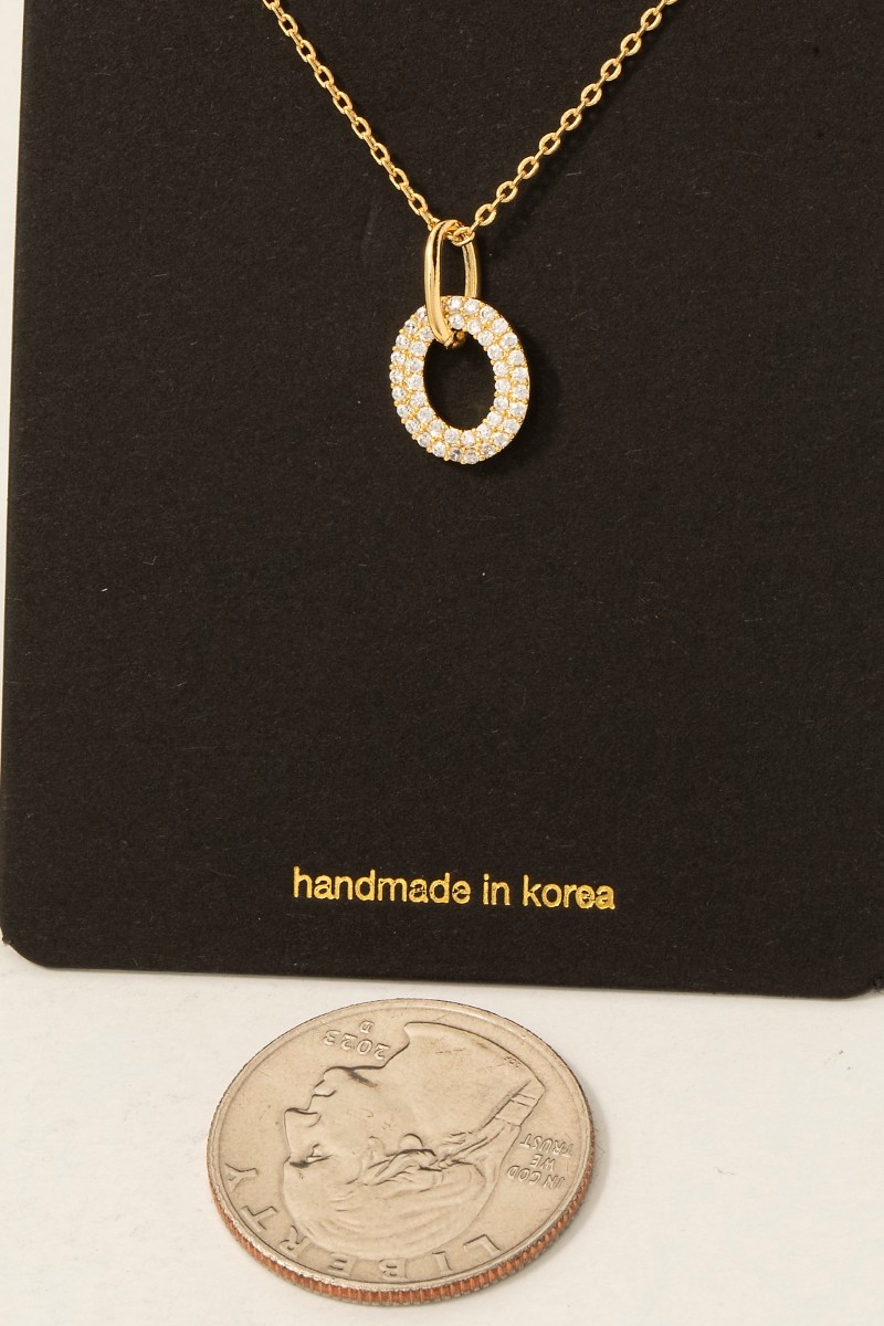 • This chain necklace showcases a timeless pave oval pendant dainty style. Step into a world of refined taste as this chain necklace effortlessly refines the details of your outfit.