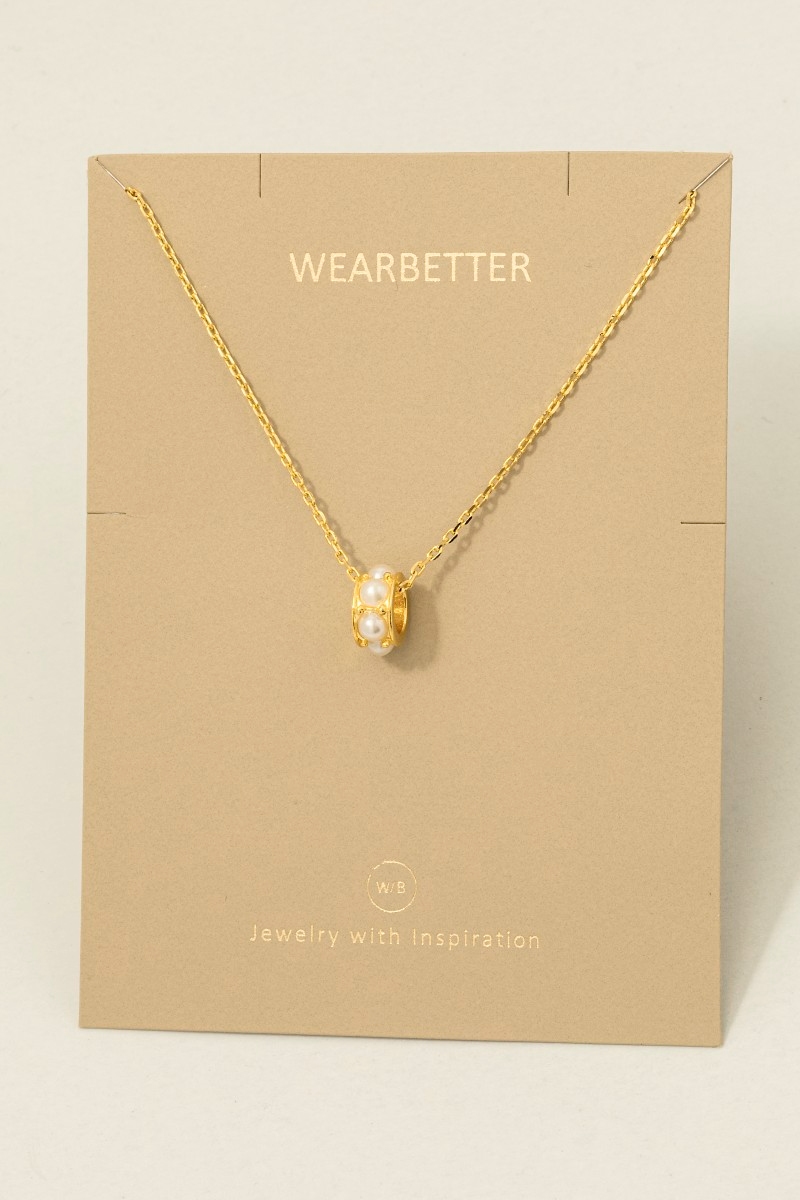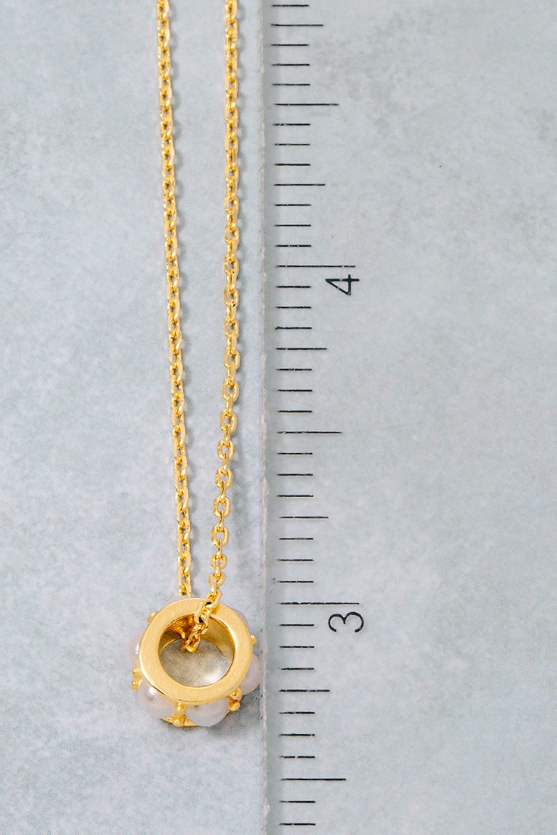 • This necklace showcases a timeless pearl studded ring pendant style. Explore a refined sense of style with this necklace, seamlessly elevating the chic factor of your look.