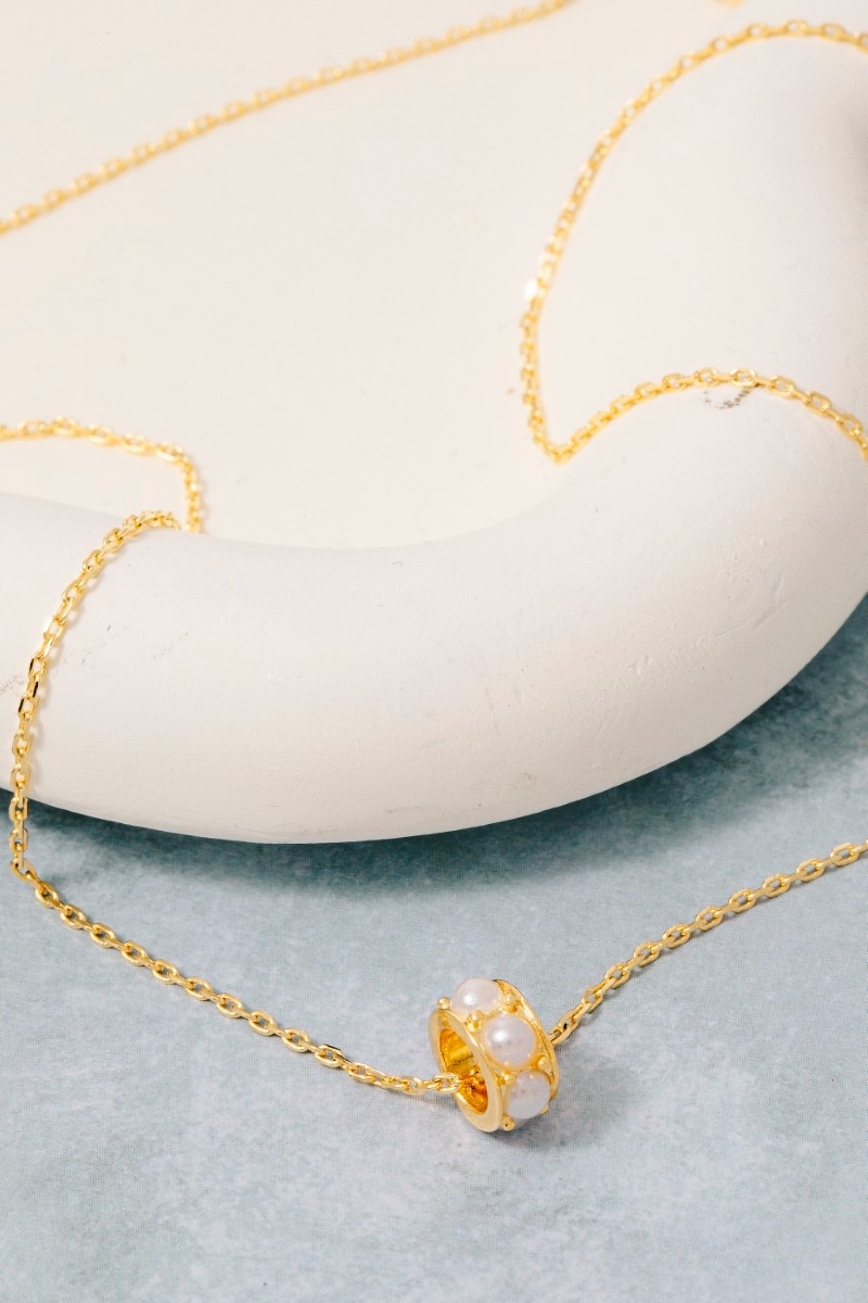 Gold Dipped Pearl Bead Ring Pendant Necklace