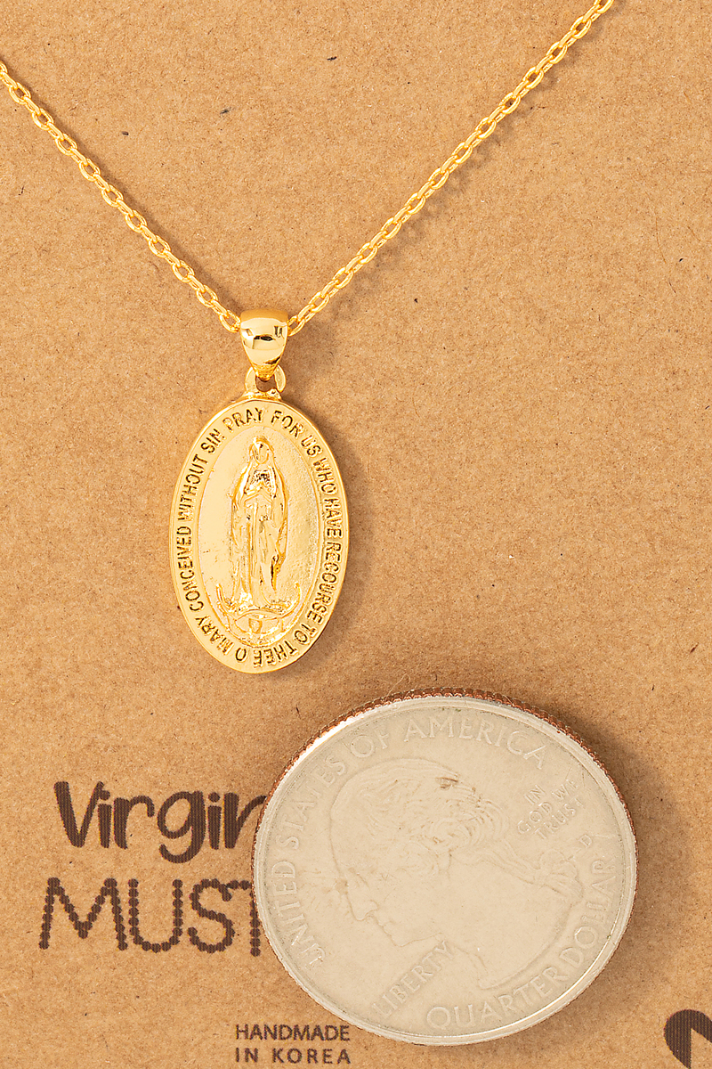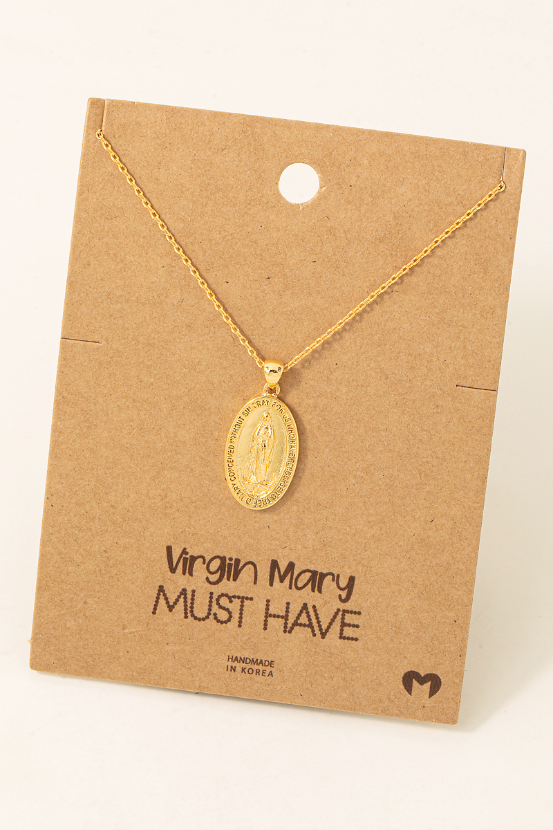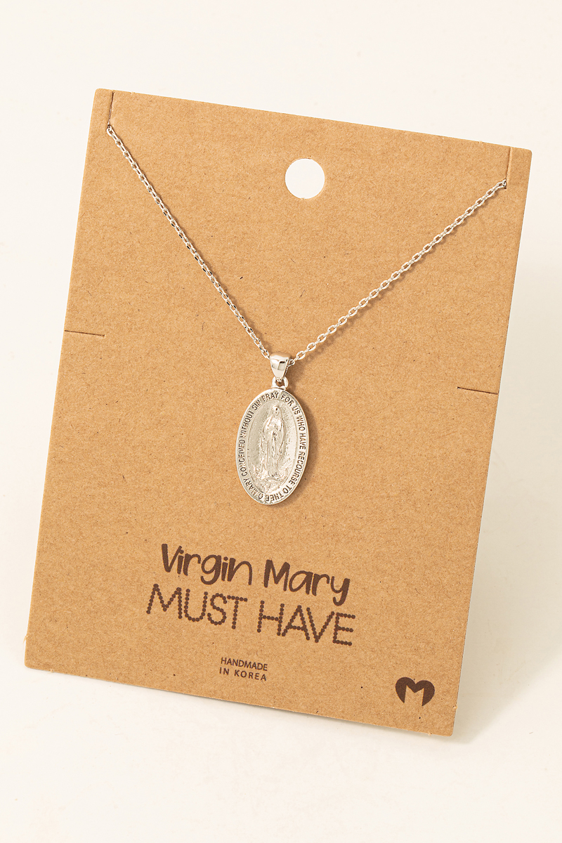 - This trending necklace brings a unique virgin mary pendant necklace style. Immerse yourself in the world of understated glamour as this trending necklace effortlessly exudes timeless appeal.