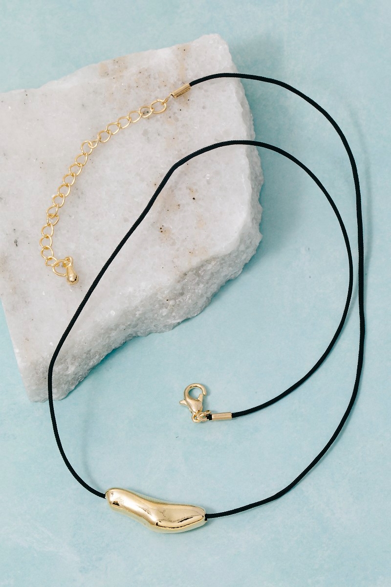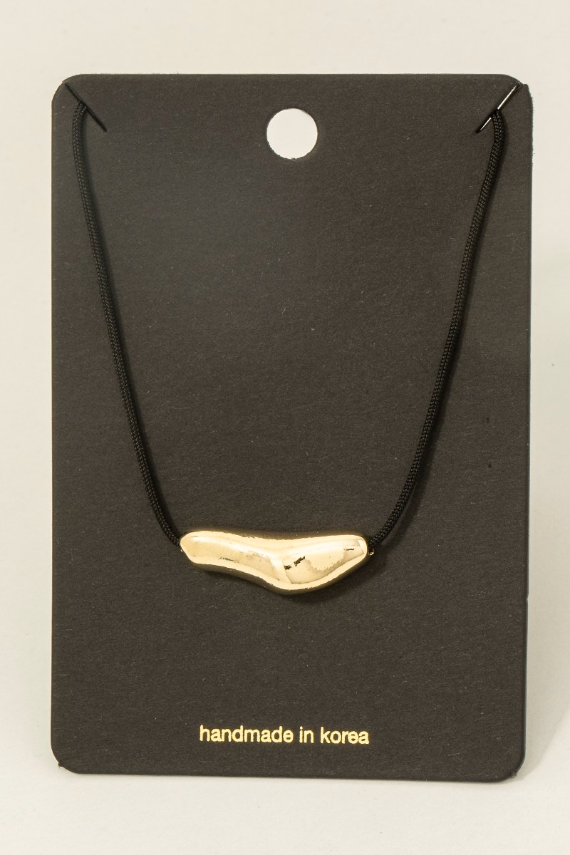 - This necklace displays a vibrant warped metallic bar pendant cord style. Immerse yourself in fashion finesse with this statement necklace.