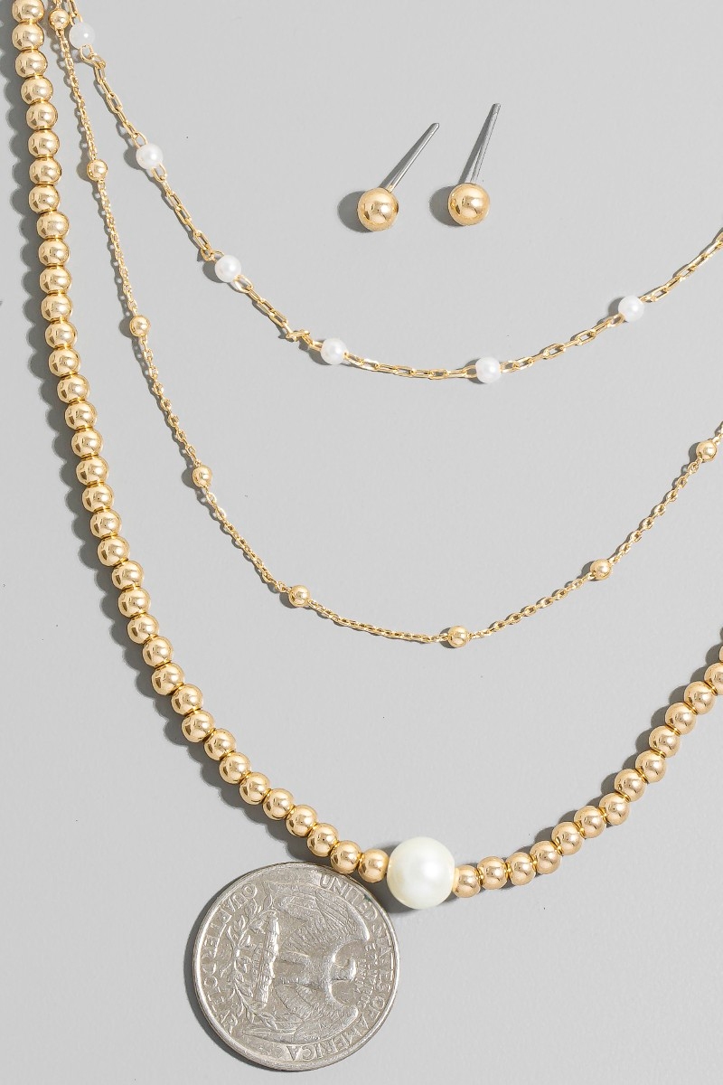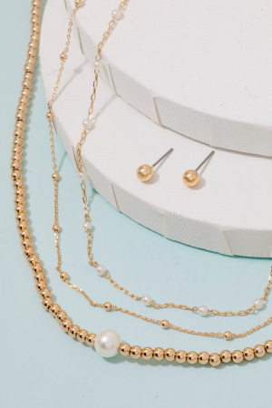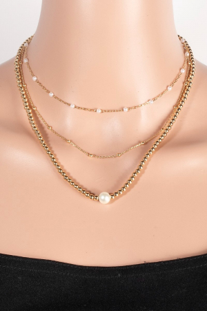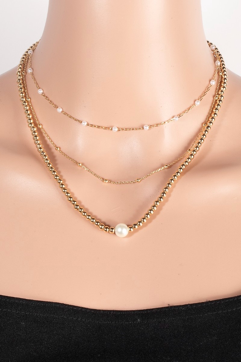 Pearl And Metallic Beaded Accent Layered Chain Necklace