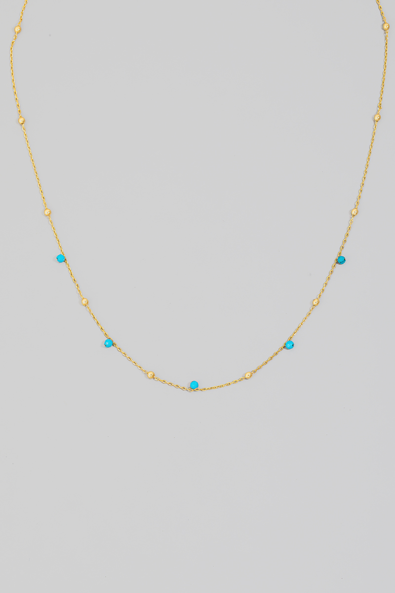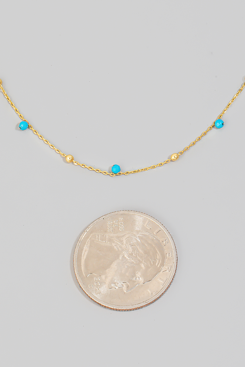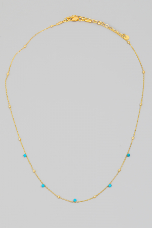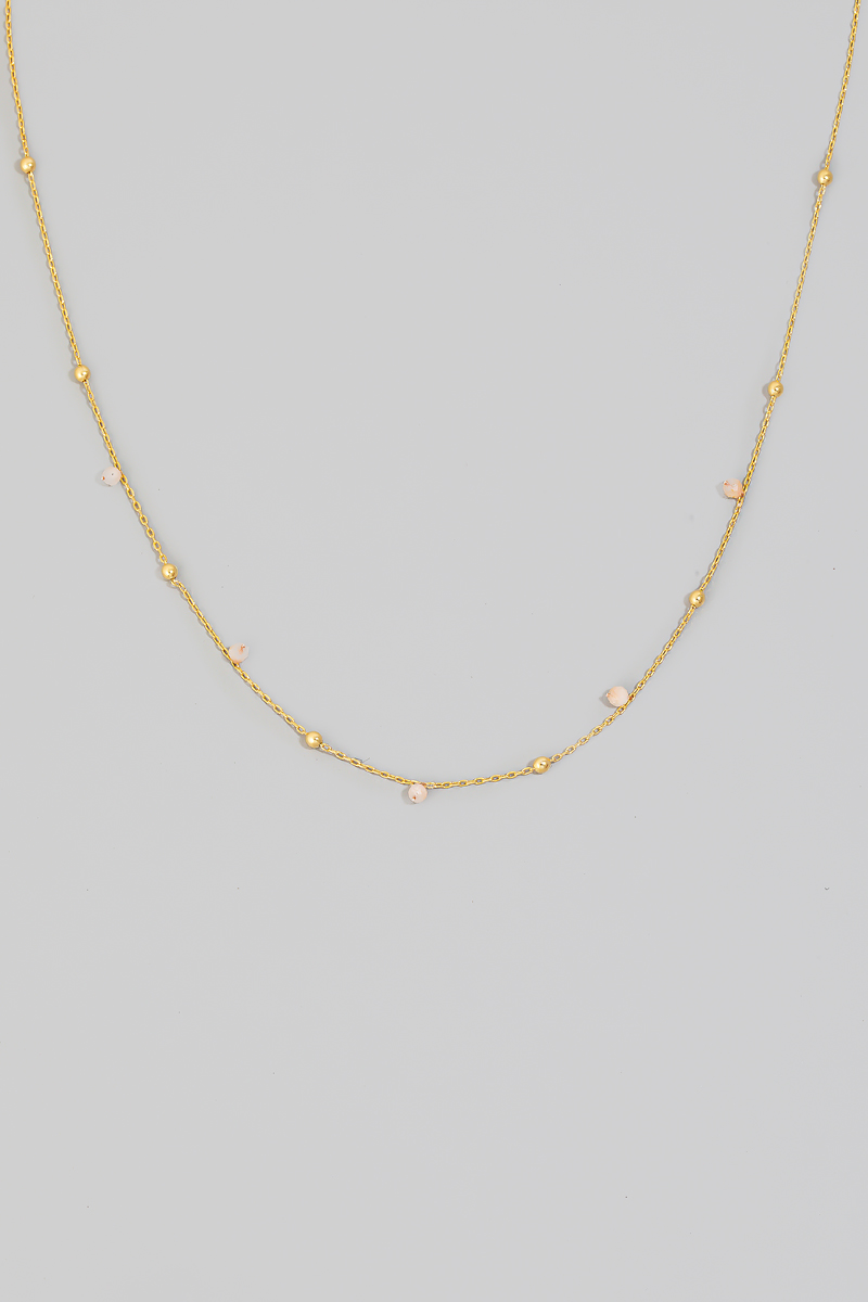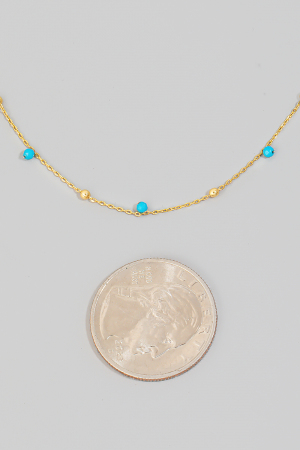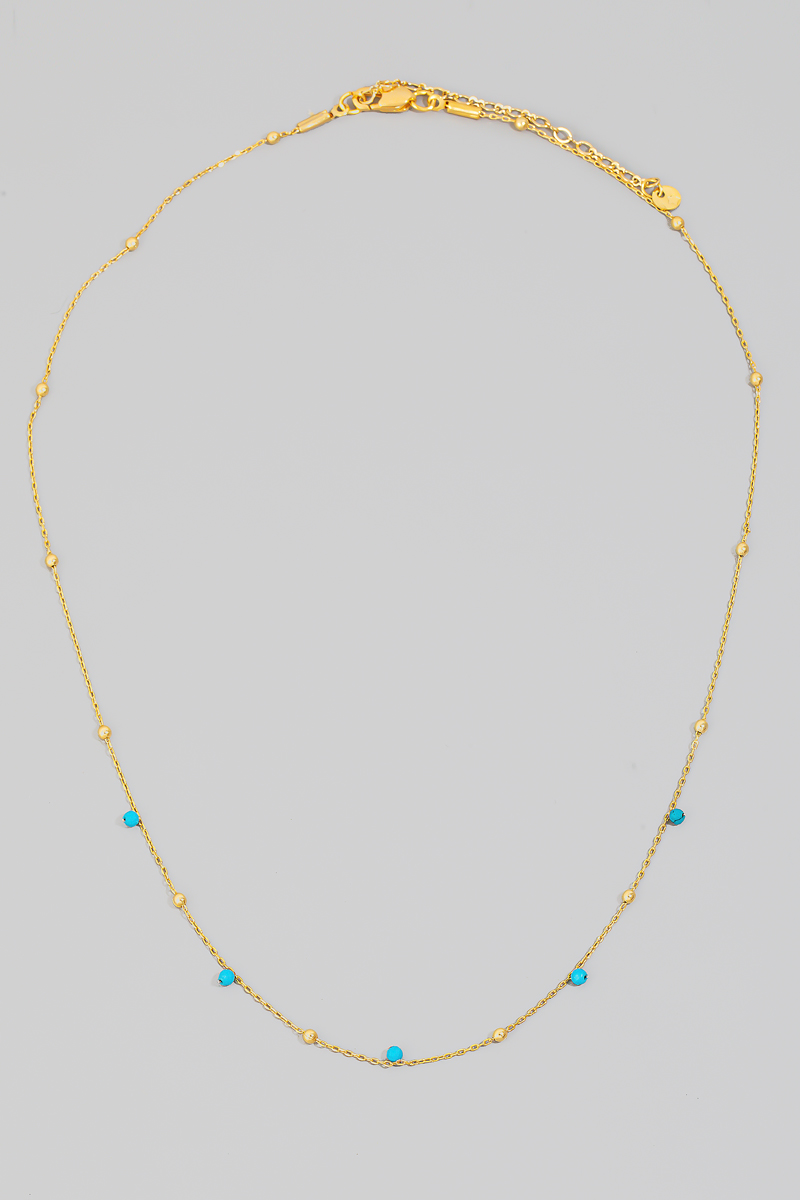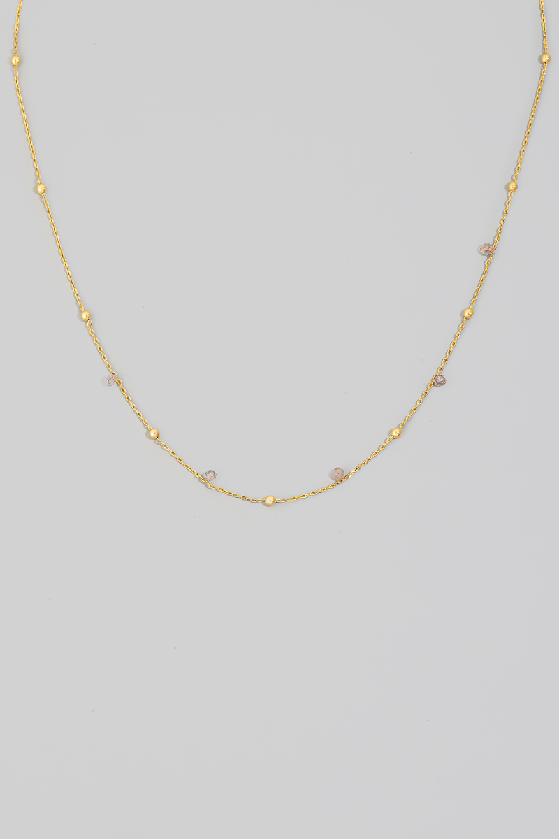 • This chain necklace displays a fashionable metallic and rhinestone station beaded style. Delight in the nuanced details that make this accessory a testament to fine design and impeccable taste.