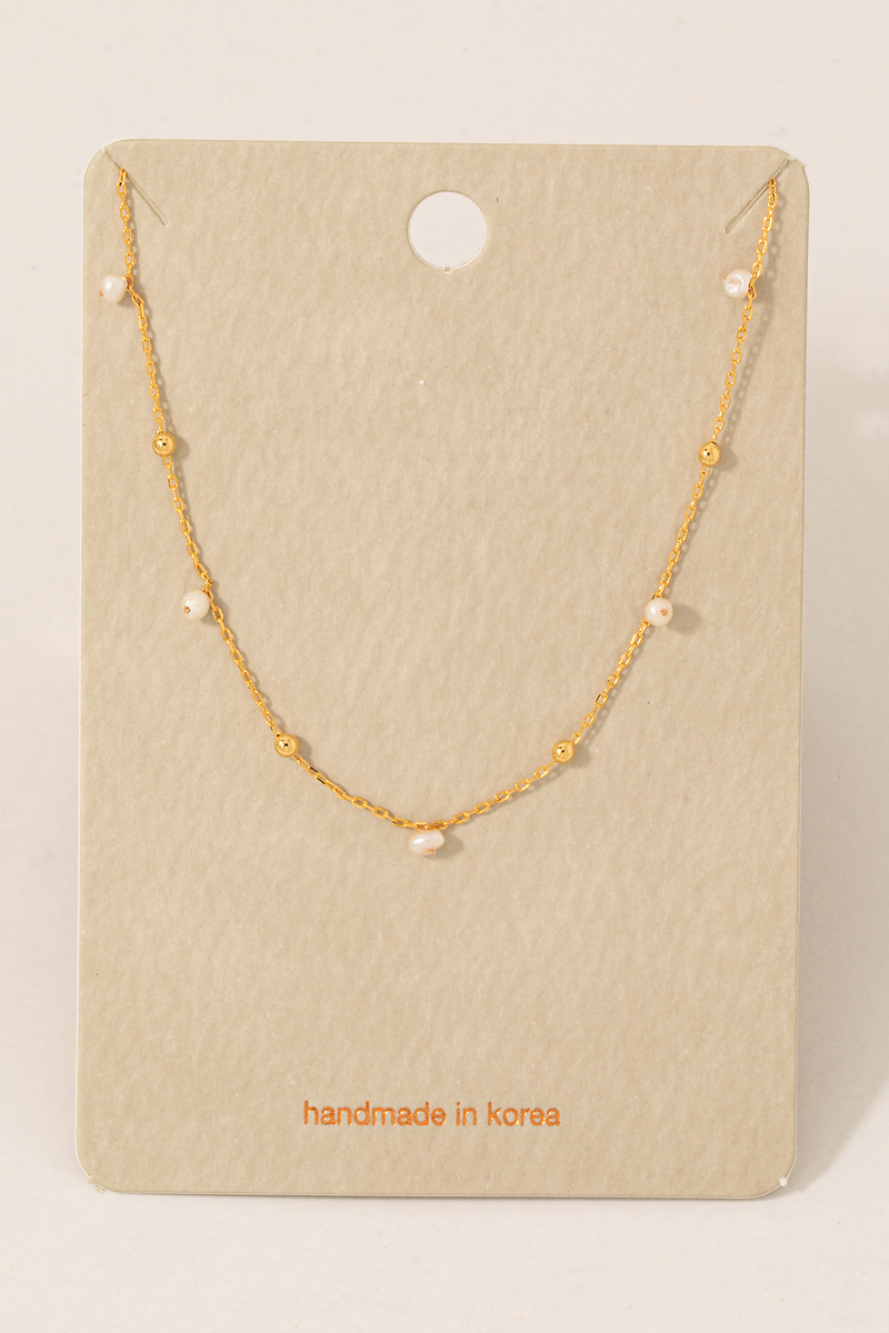 Layered Pearl Bead Chain Flower Pendant Necklace Set