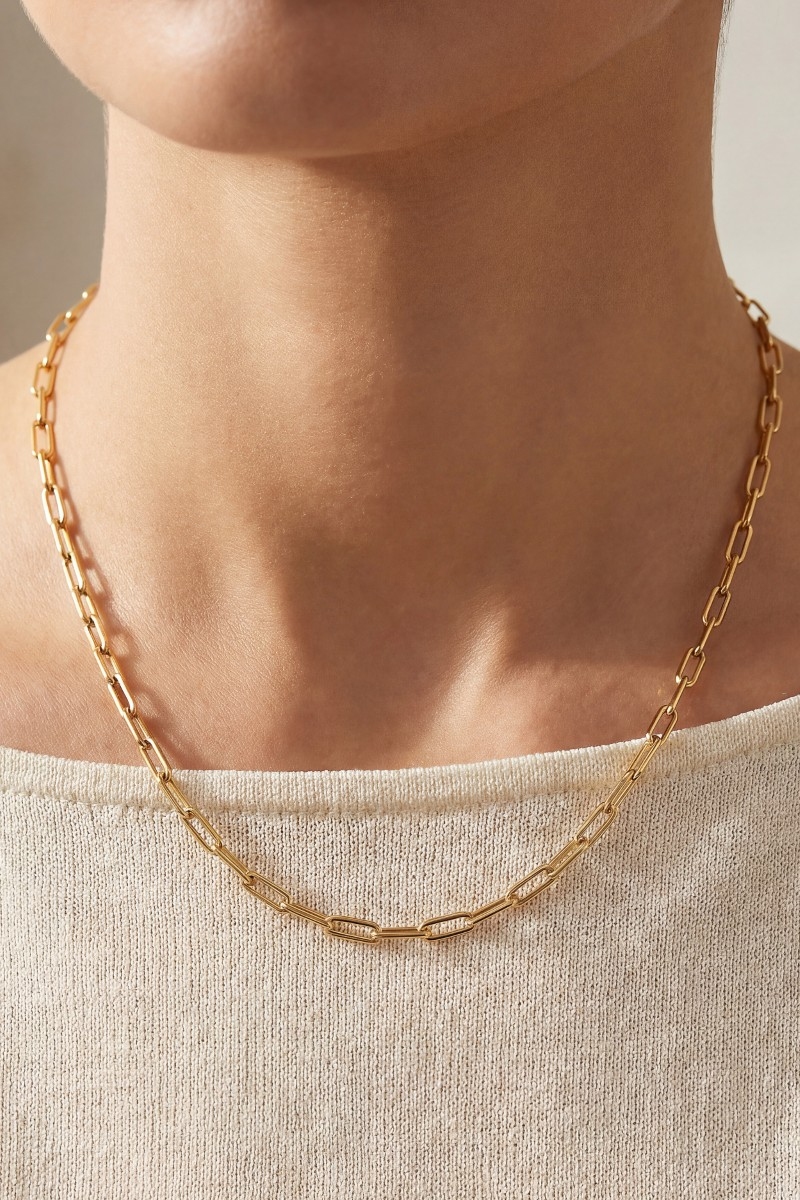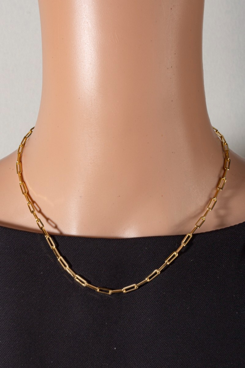 • This chain necklace introduces a stunning metallic paperclip style. Delight in the intricate details that make this chain necklace an essential element in expressing your fashion identity.