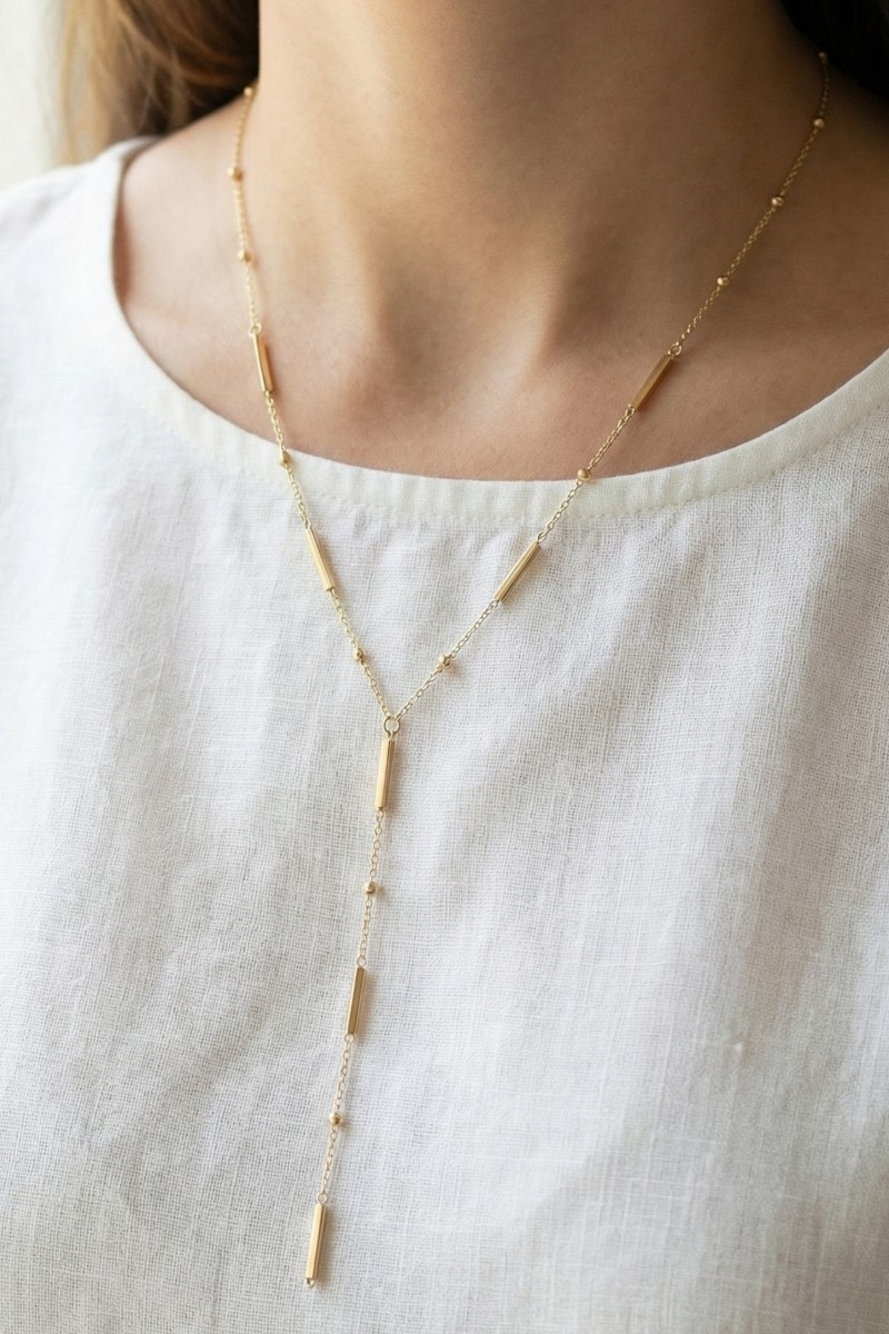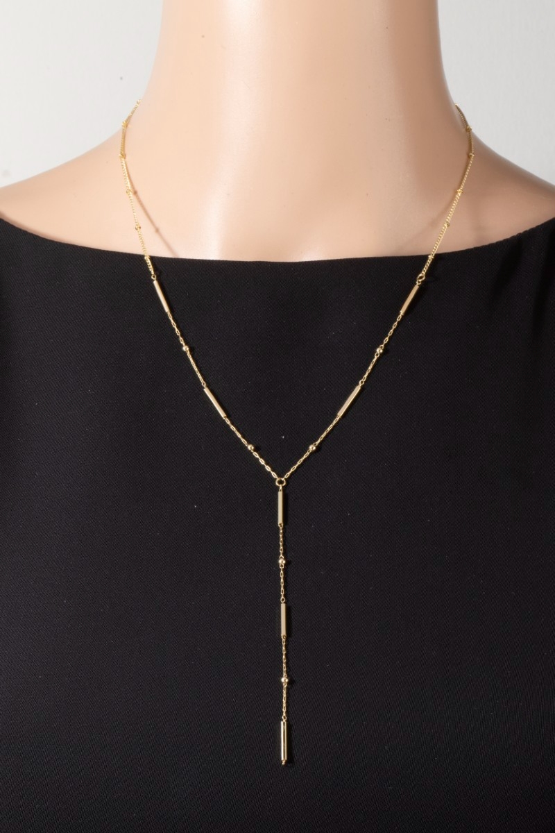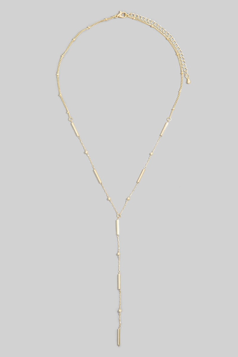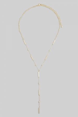 Gold Dipped Double Irregular Bar Y Chain Necklace