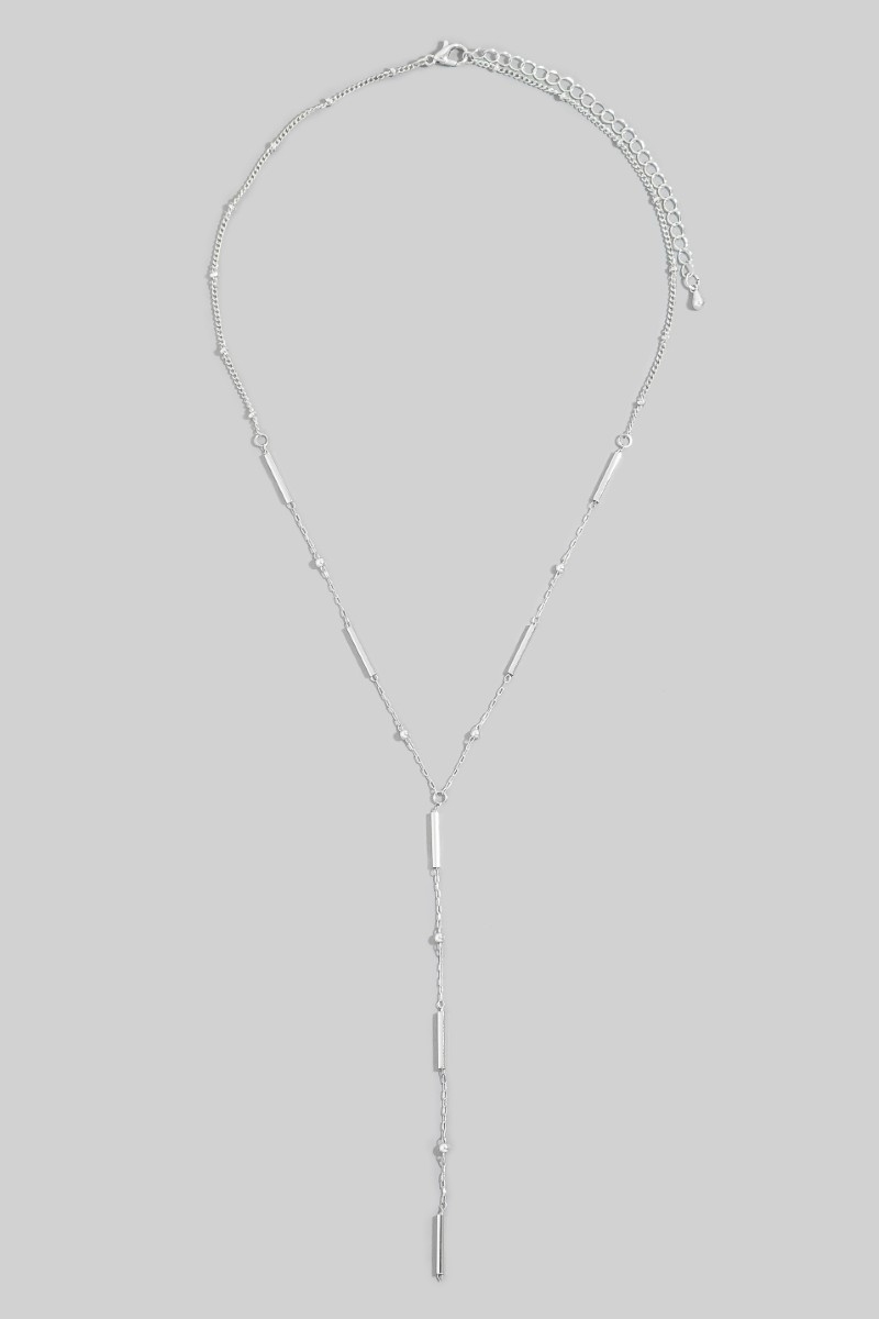 • This chain necklace displays a fashionable metallic station bar charms y style. Explore a refined sense of style with this chain necklace, seamlessly elevating the chic factor of your look.