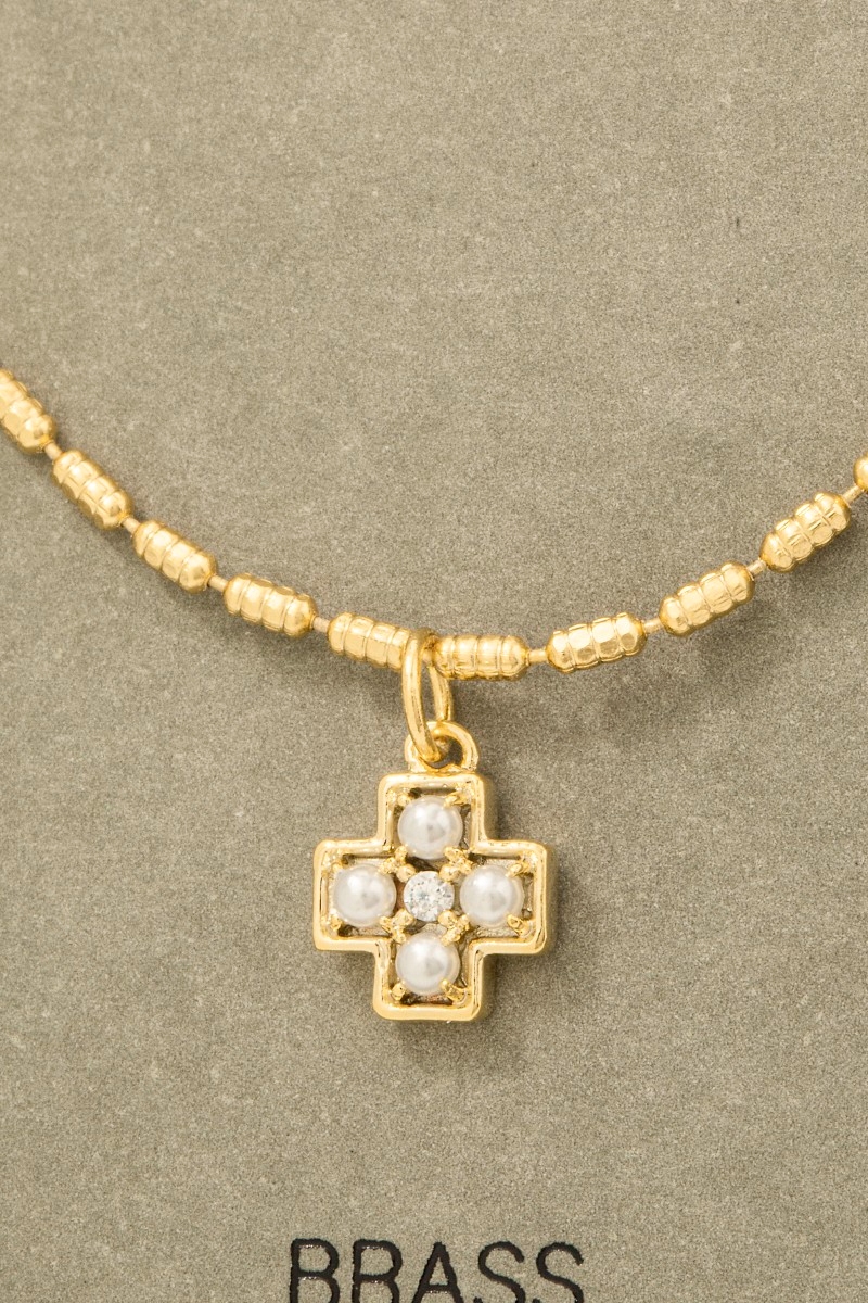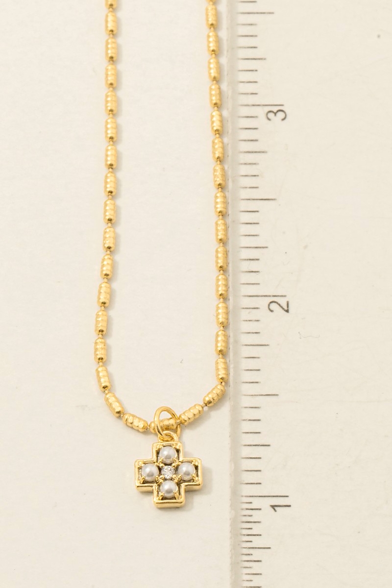 - This necklace introduces a stunning mini pearl cross pendant style. Unveil modern elegance with this subtly intricate necklace.