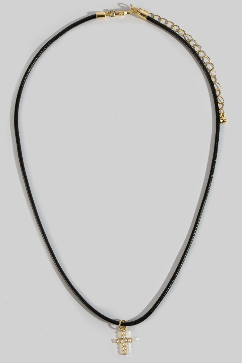 - This necklace introduces a unique mini pearl beaded cross cord style. Explore a blend of classic charm and contemporary flair.