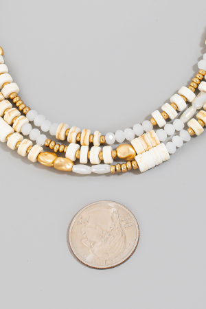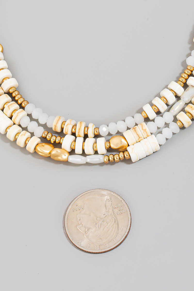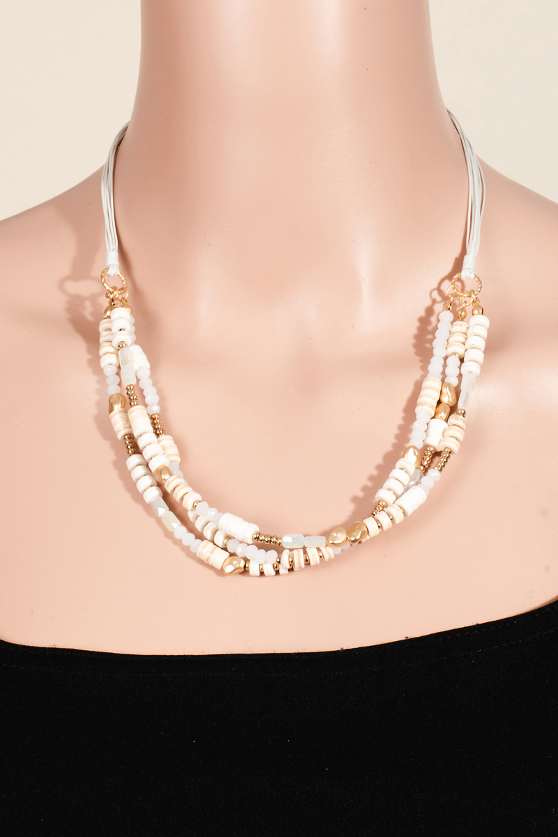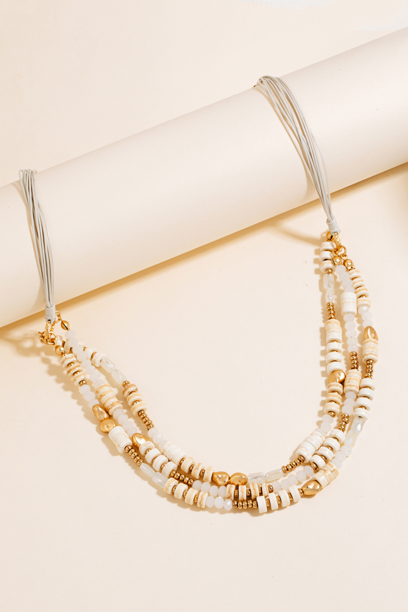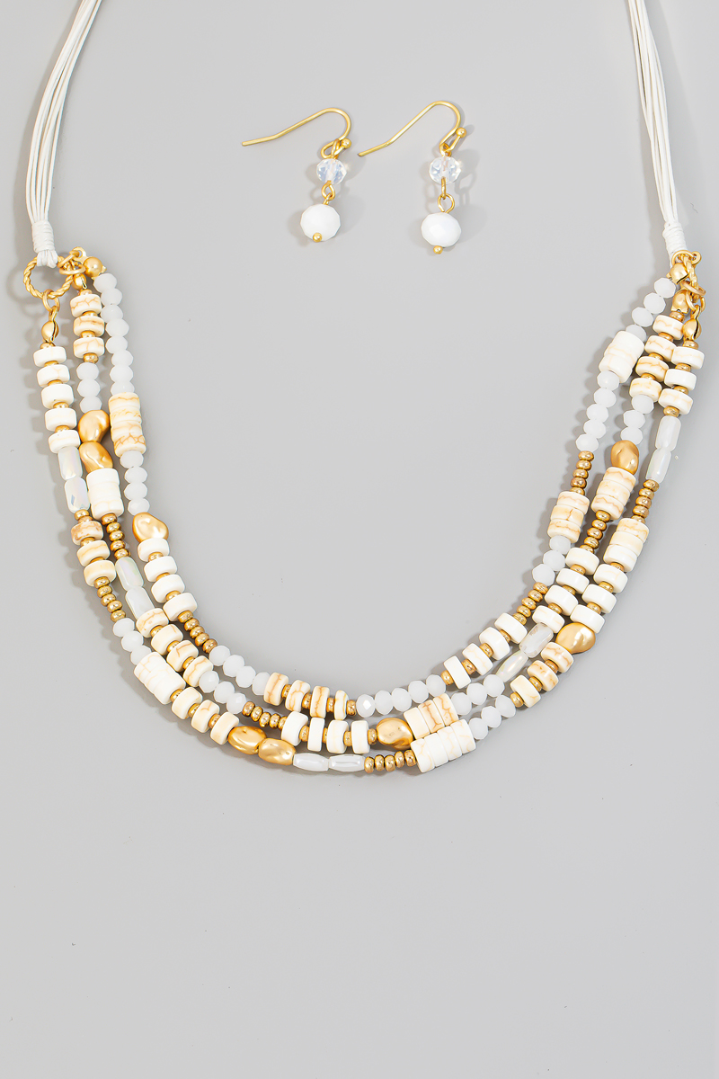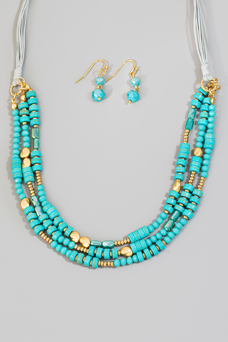 - This necklace set displays a vibrant mixed beaded layered cord style. Revel in the intricate design that effortlessly distinguishes this necklace set, making it a statement piece.
