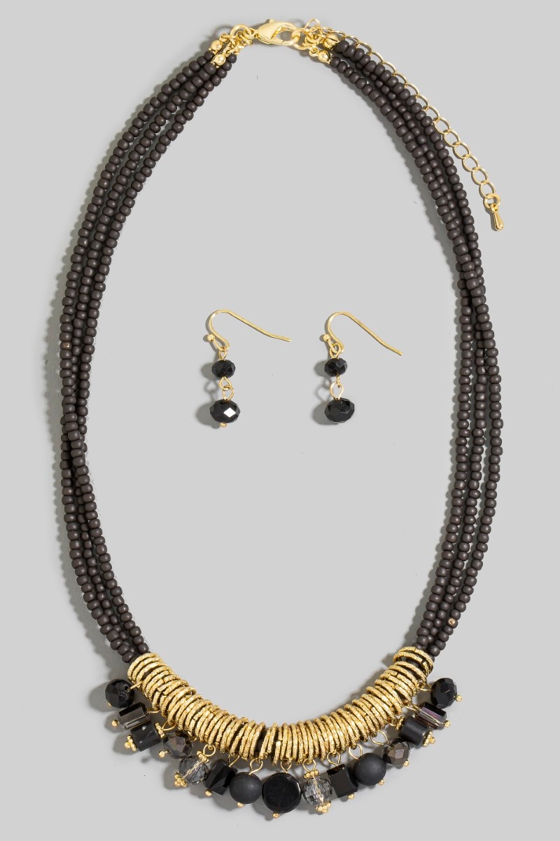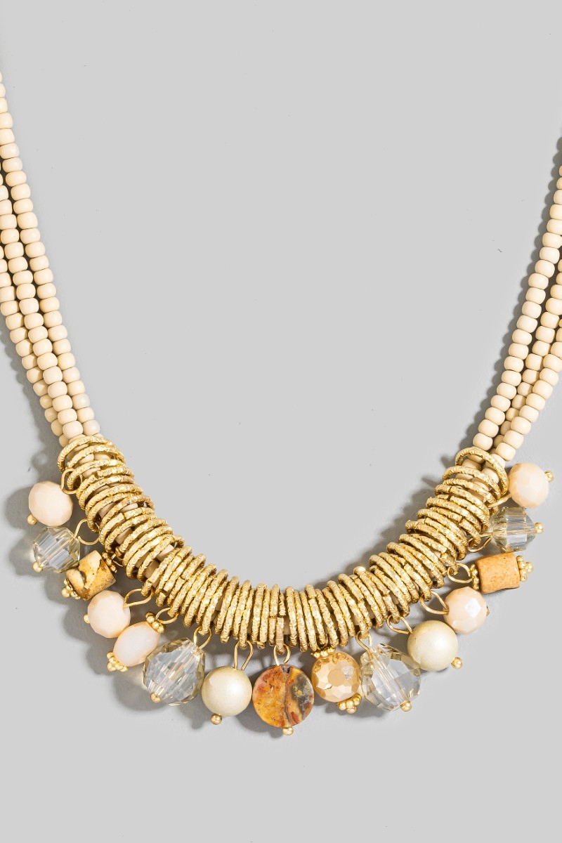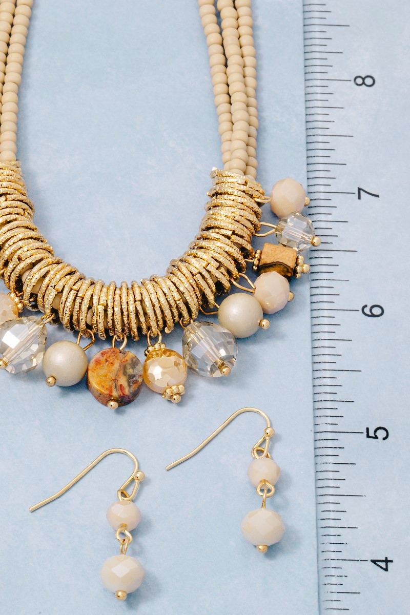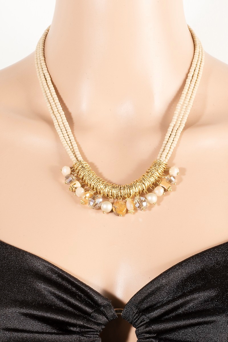 - This necklace set brings a stunning mixed beaded layered statement style. Witness the transformative power of accessories as this piece effortlessly redefines your fashion narrative.