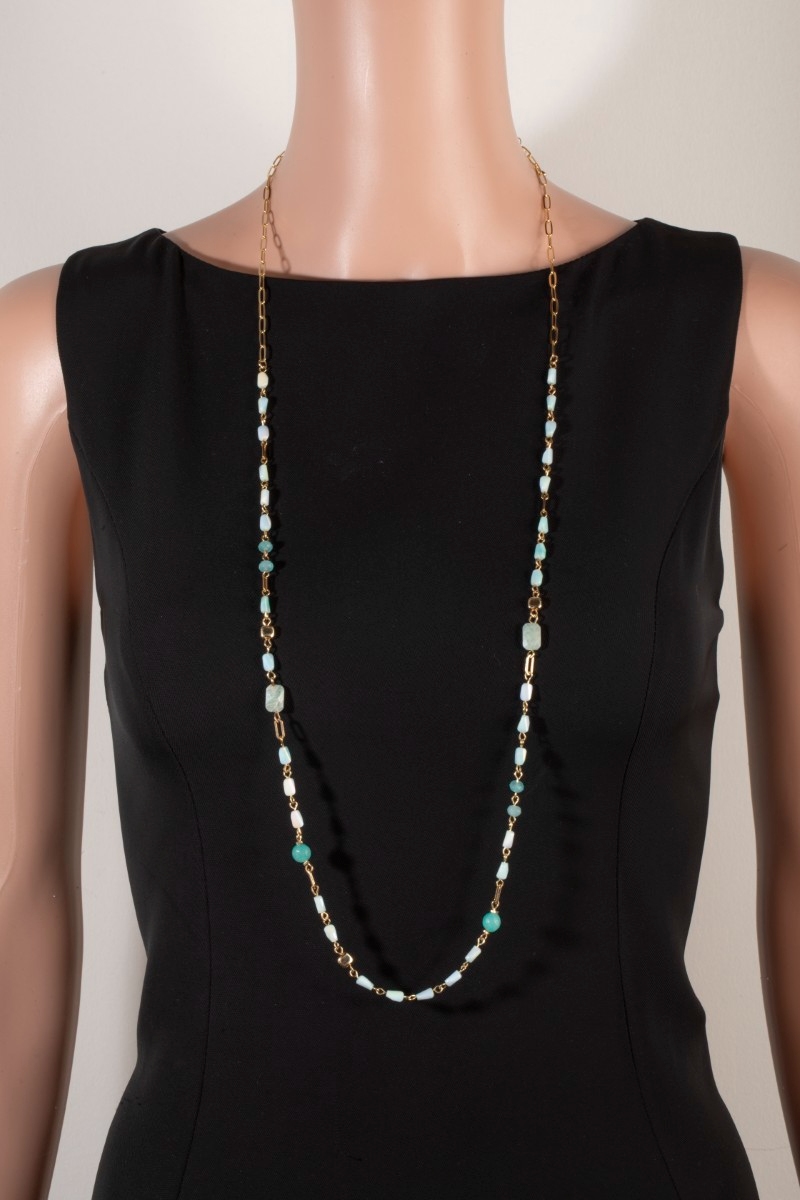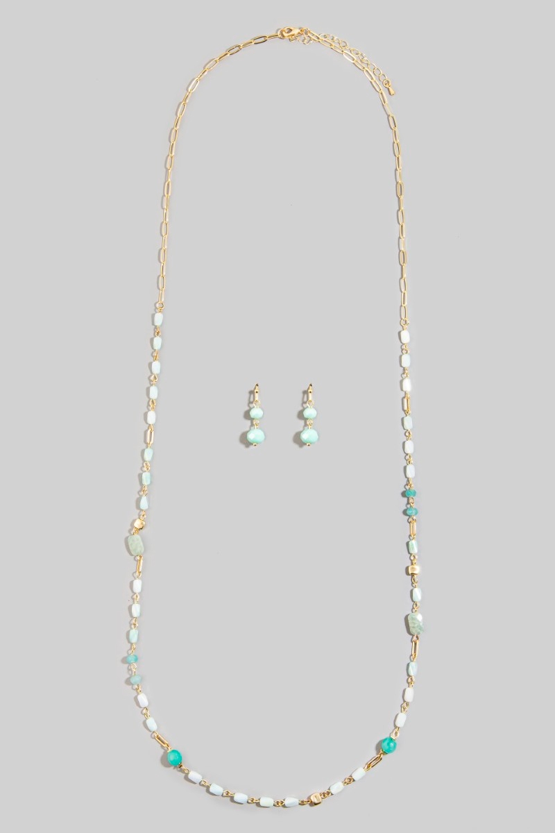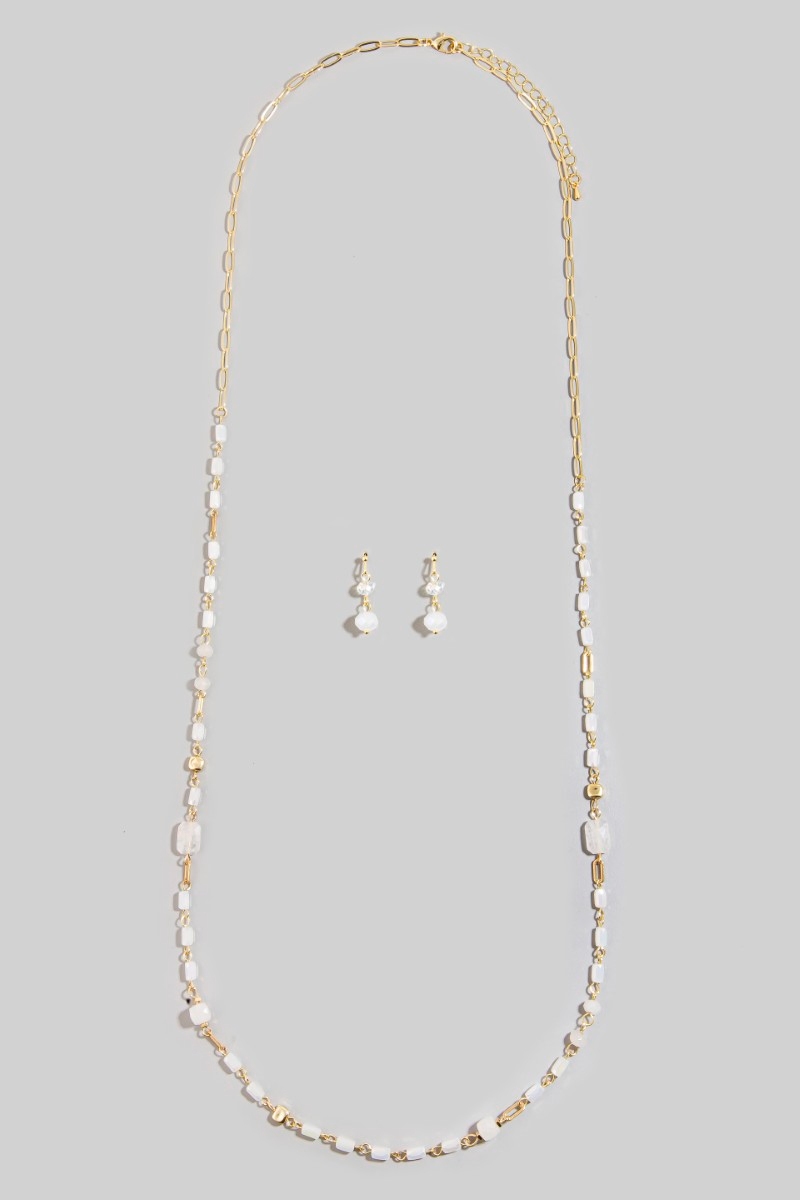 - This chain necklace displays a fashionable mixed beaded long set style. Discover the perfect balance of subtlety and flair as this chain necklace effortlessly completes your look.