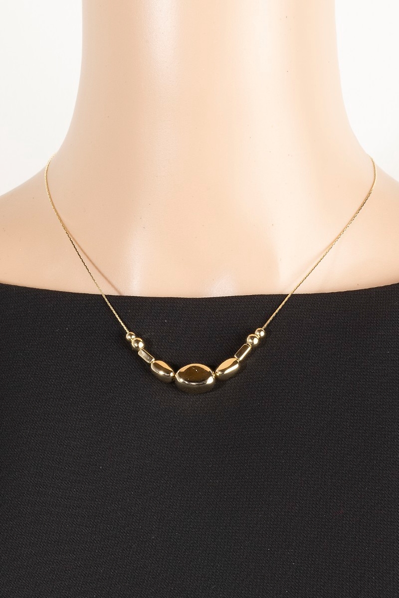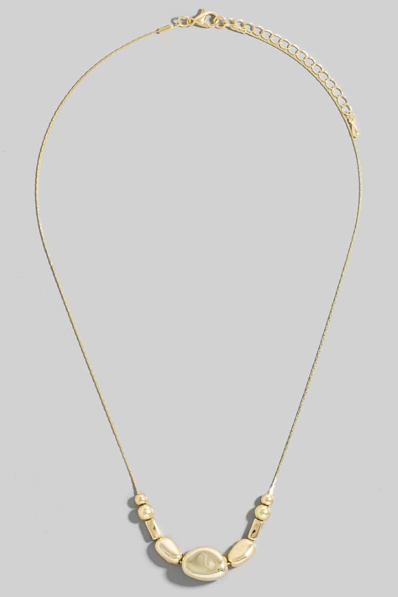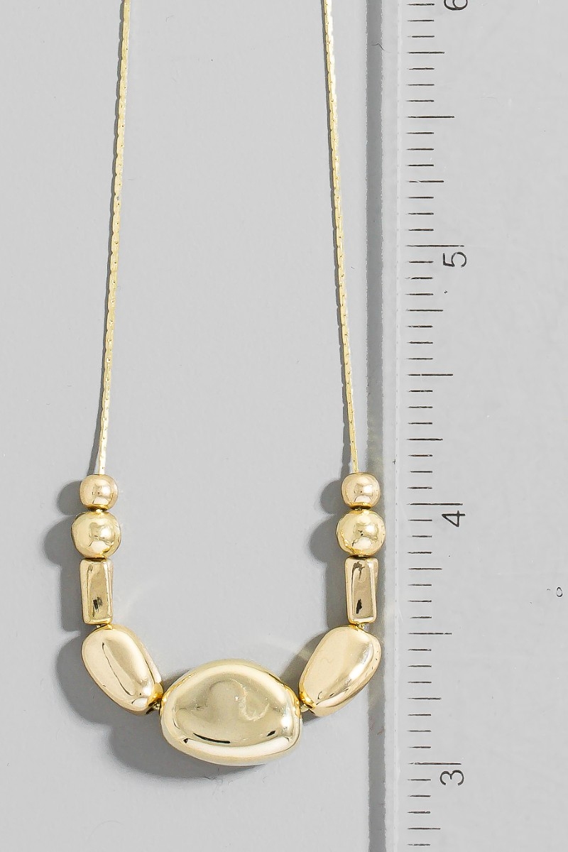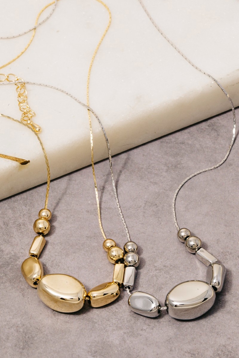 - This chain necklace introduces a unique mixed metallic beads dainty style. Experience refined sophistication with this understated yet stylish piece.