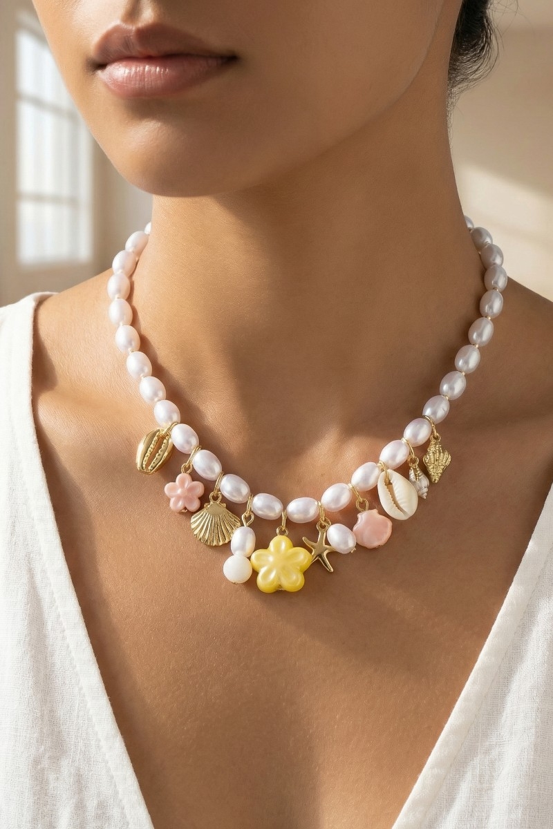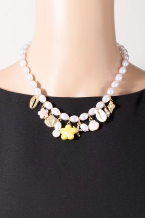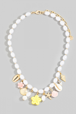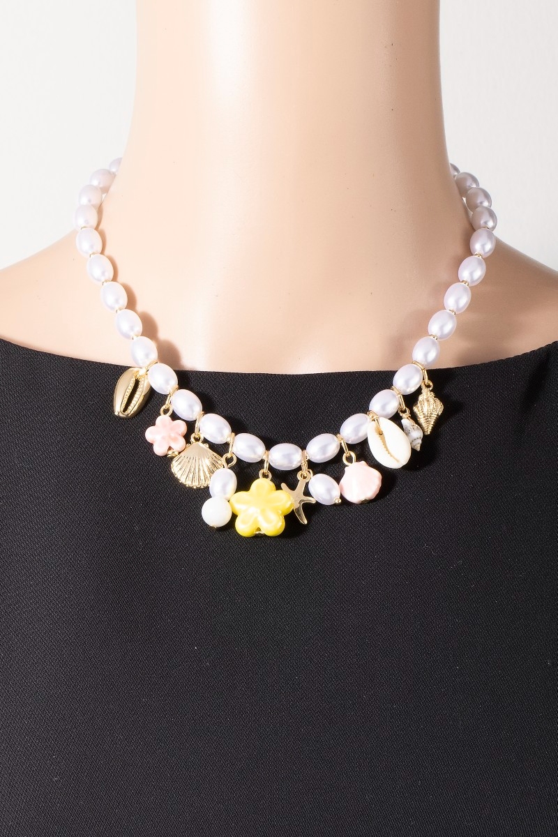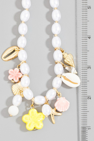 - This adds a modern mixed sea life charms oval pearl beaded necklace style. Elevate your ensemble with this that effortlessly captures the essence of refined fashion.